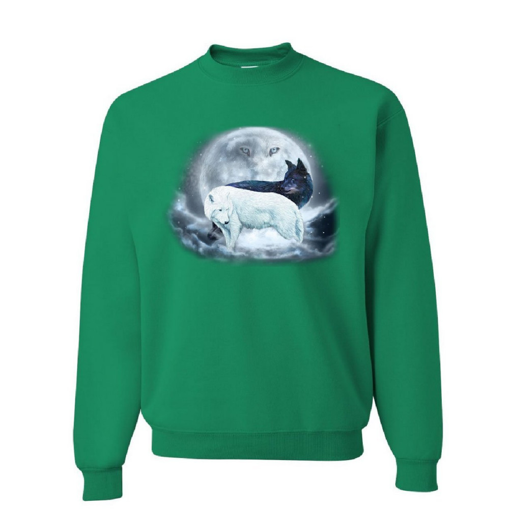 YIN & YANG WOLVES sweatshirt animals wildlife nature wolf pack moon sweater green