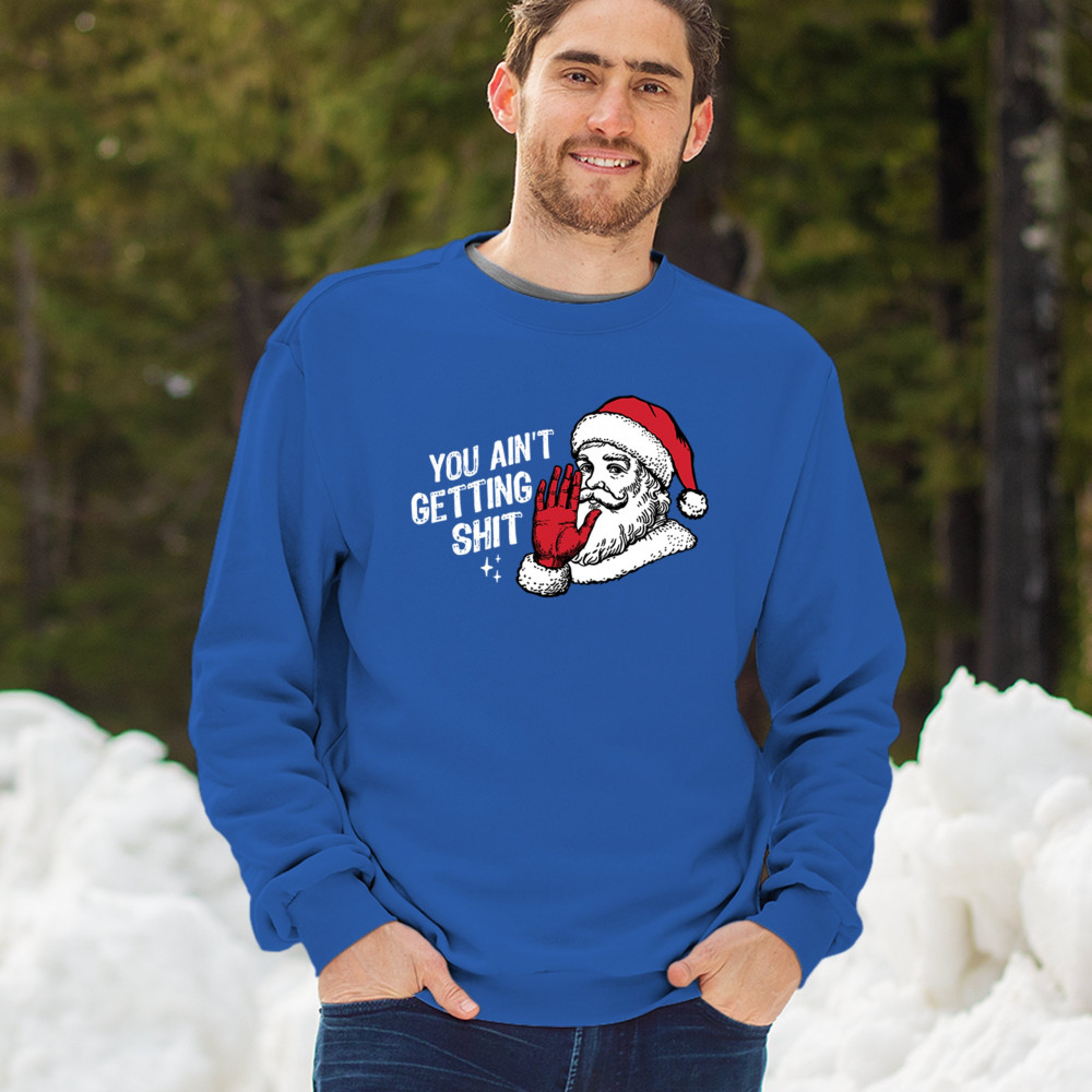 Funny Santa Christmas design with sarcastic Grumpy humor, Merry Xmas parody, Let It Snow style, Jingle Bells laughs, and Christmas tree vibes.