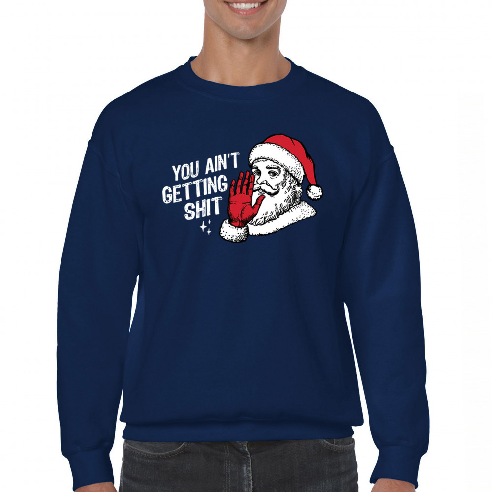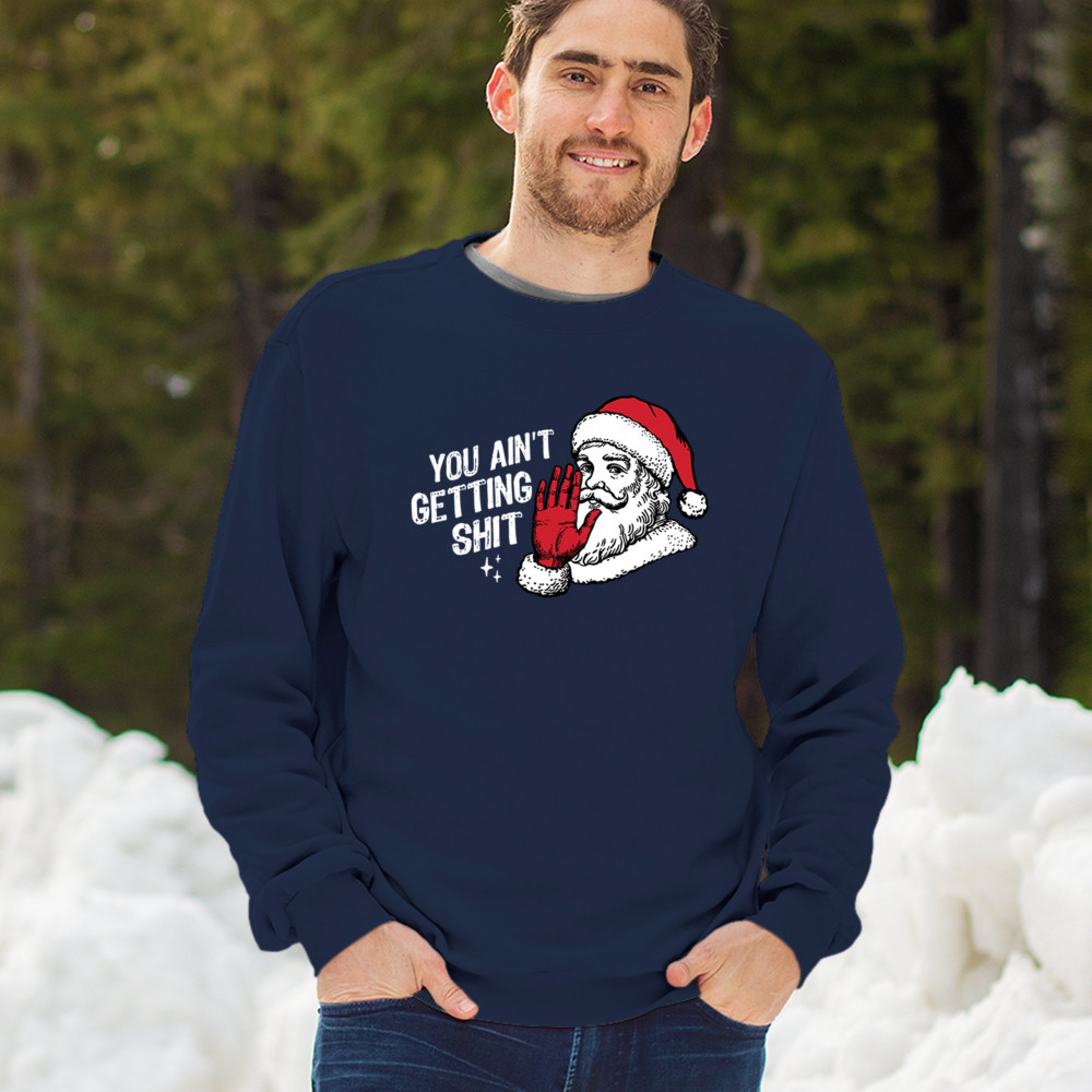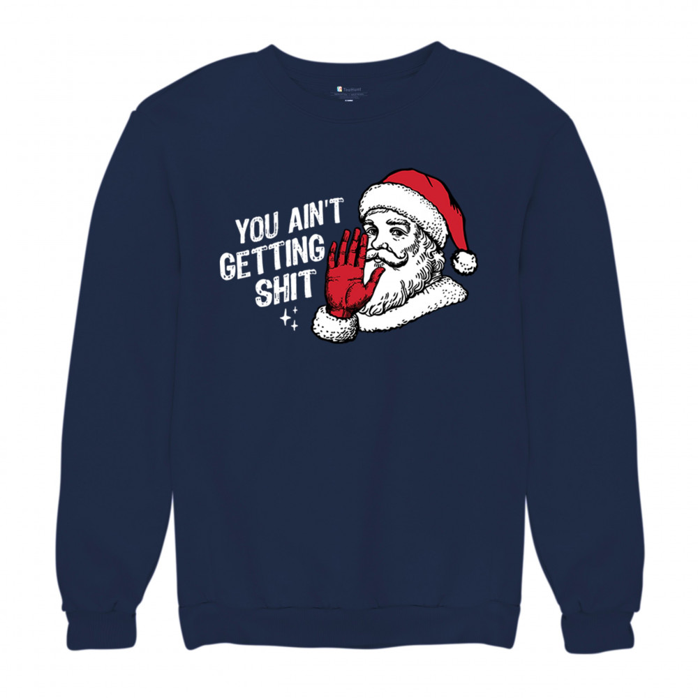 YOU AIN’T GETTING SH*T crewneck sweatshirt funny santa claus merry christmas navy blue