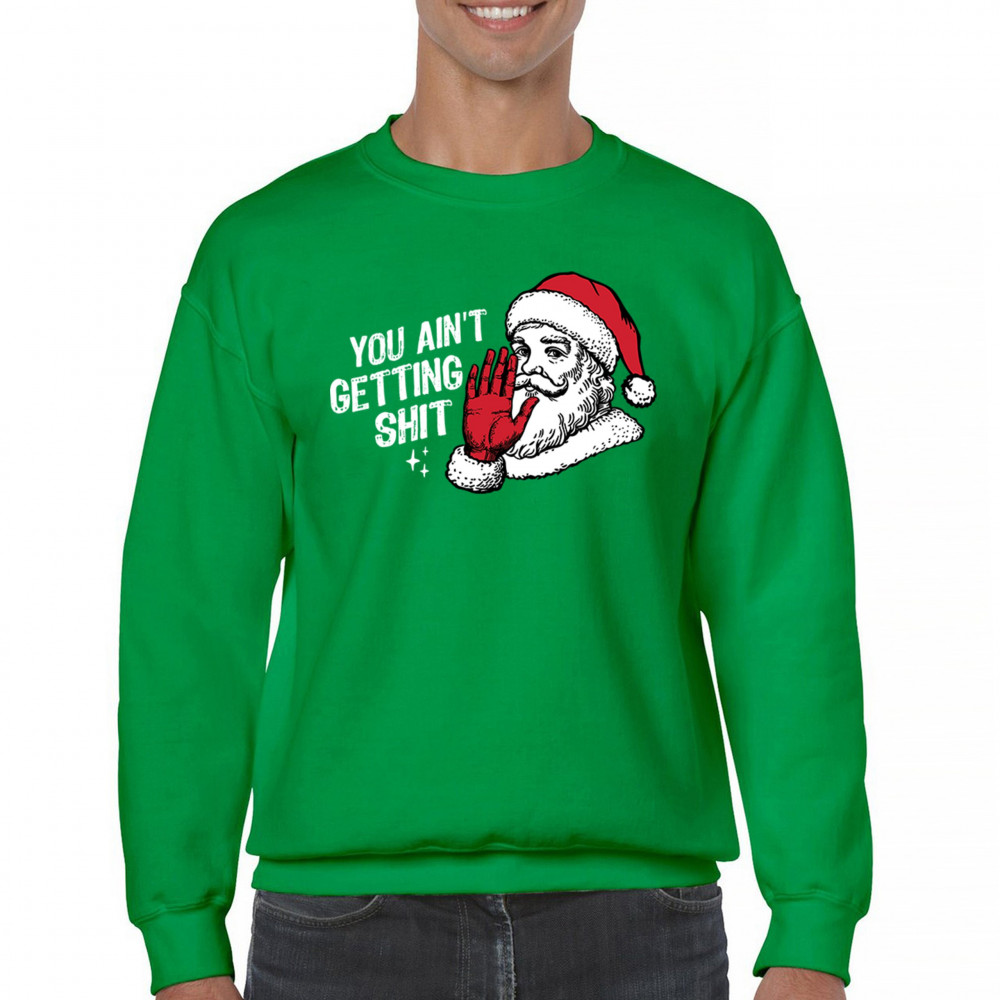 Funny Santa Christmas design with sarcastic Grumpy humor, Merry Xmas parody, Let It Snow style, Jingle Bells laughs, and Christmas tree vibes.