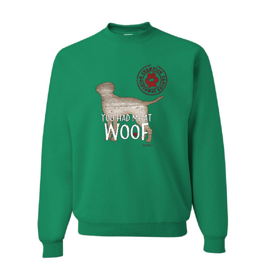 YOU HAD ME AT WOOF sweatshirt pet friend dogs doggie puppy paw bark sweater green