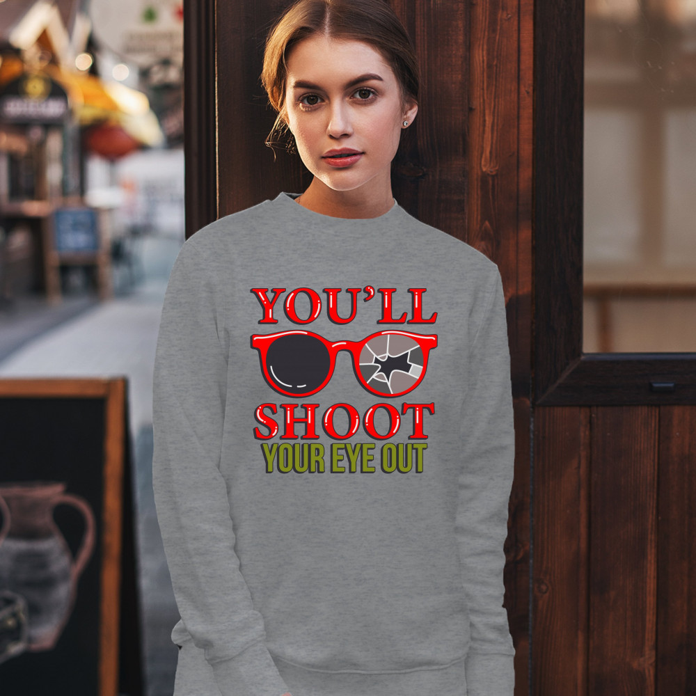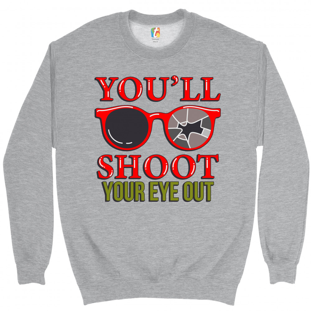 YOU'LL SHOOT YOUR EYE OUT sweatshirt funny christmas saying xmas crewneck gray