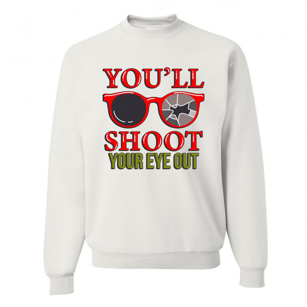 YOU'LL SHOOT YOUR EYE OUT sweatshirt funny christmas saying xmas crewneck white