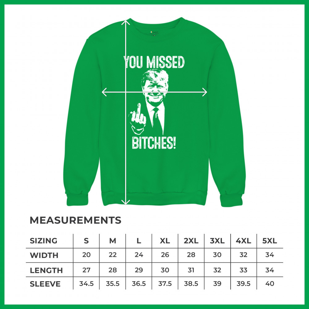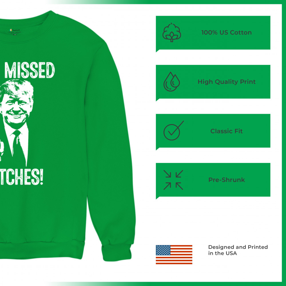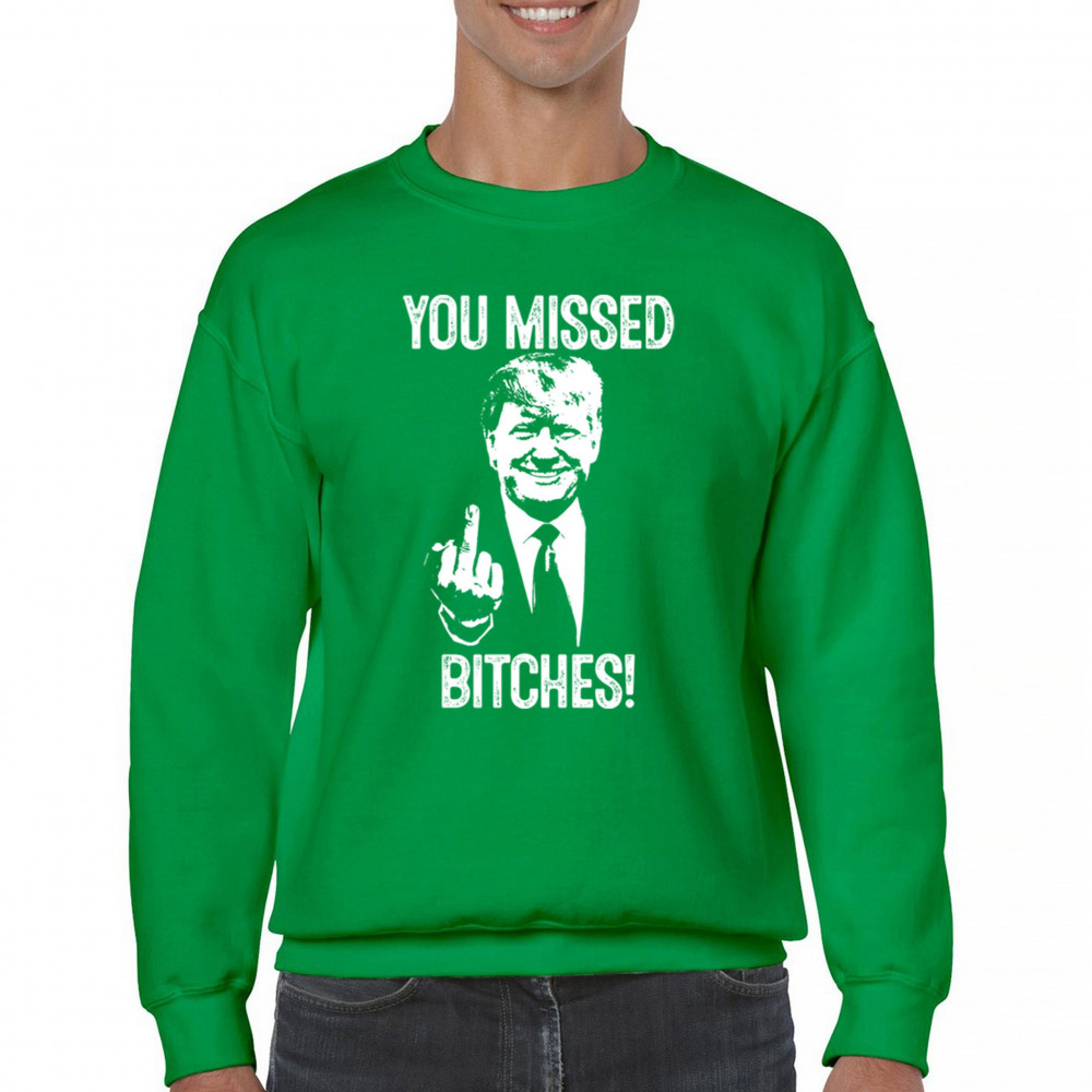 Commemorate Trump's resilience and determination with our bold "You Missed Bitches!" design. Show your support and patriotism.