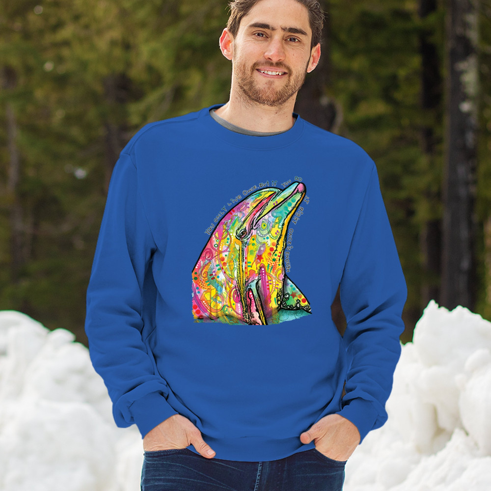 YOU ONLY LIVE ONCE sweatshirt cute neon dolphin dean russo yolo crewneck royal blue