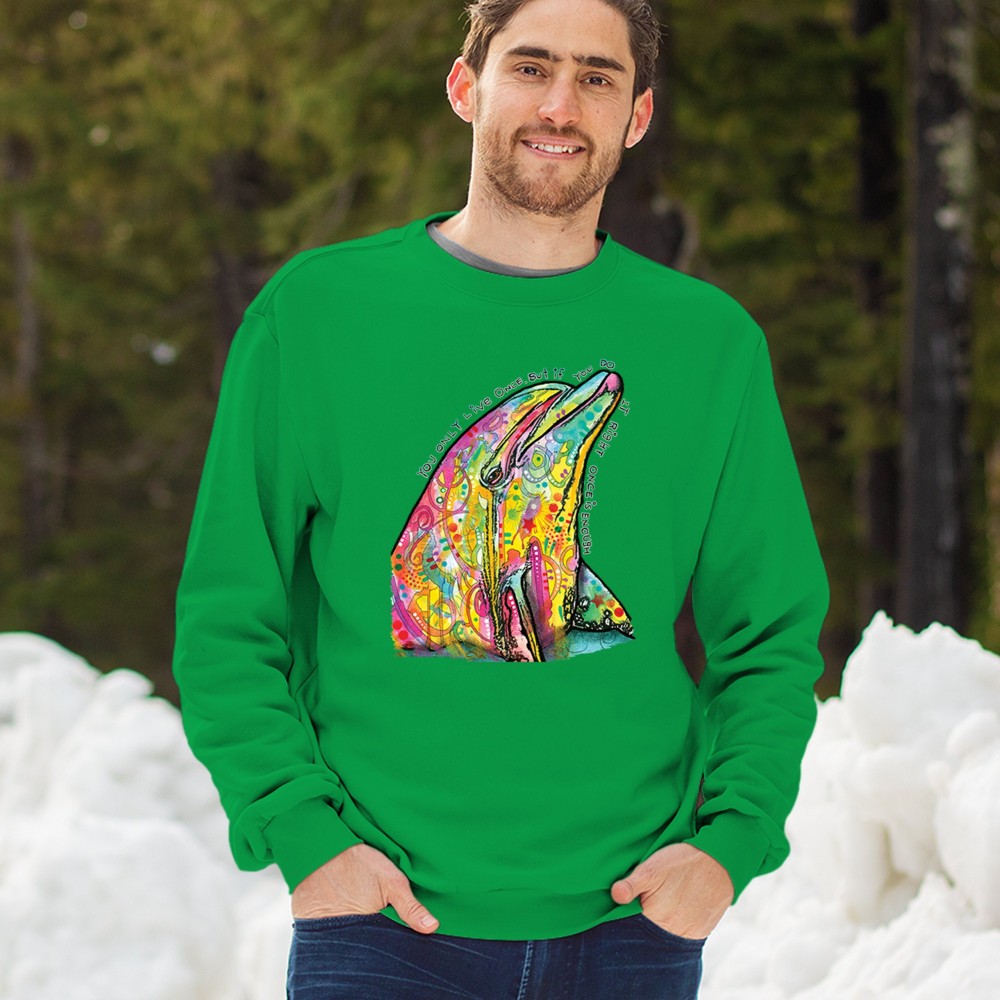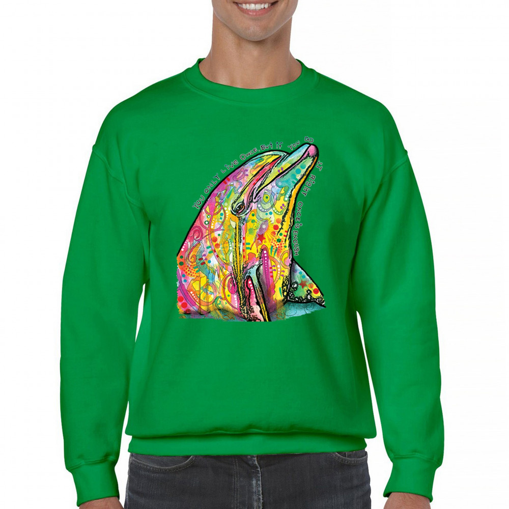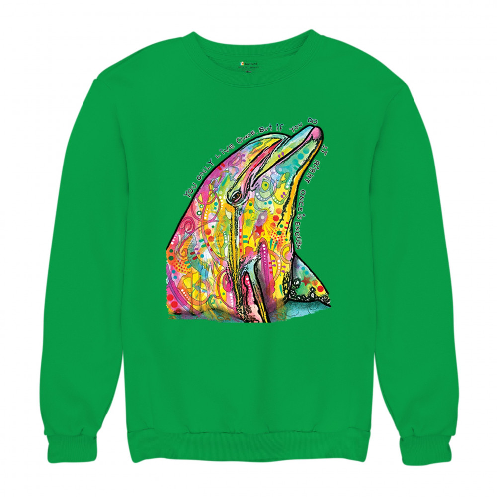 YOU ONLY LIVE ONCE sweatshirt cute neon dolphin dean russo yolo crewneck green