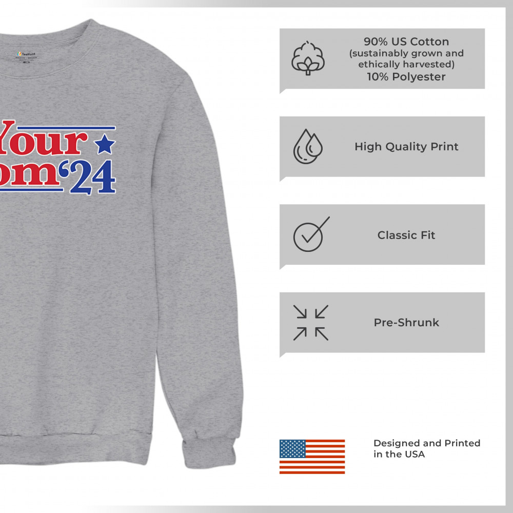 Show off your humor and style with the "Your Mom '24" design. Perfect for the 2024 election season, this design combines quality, comfort, and a playful political twist.