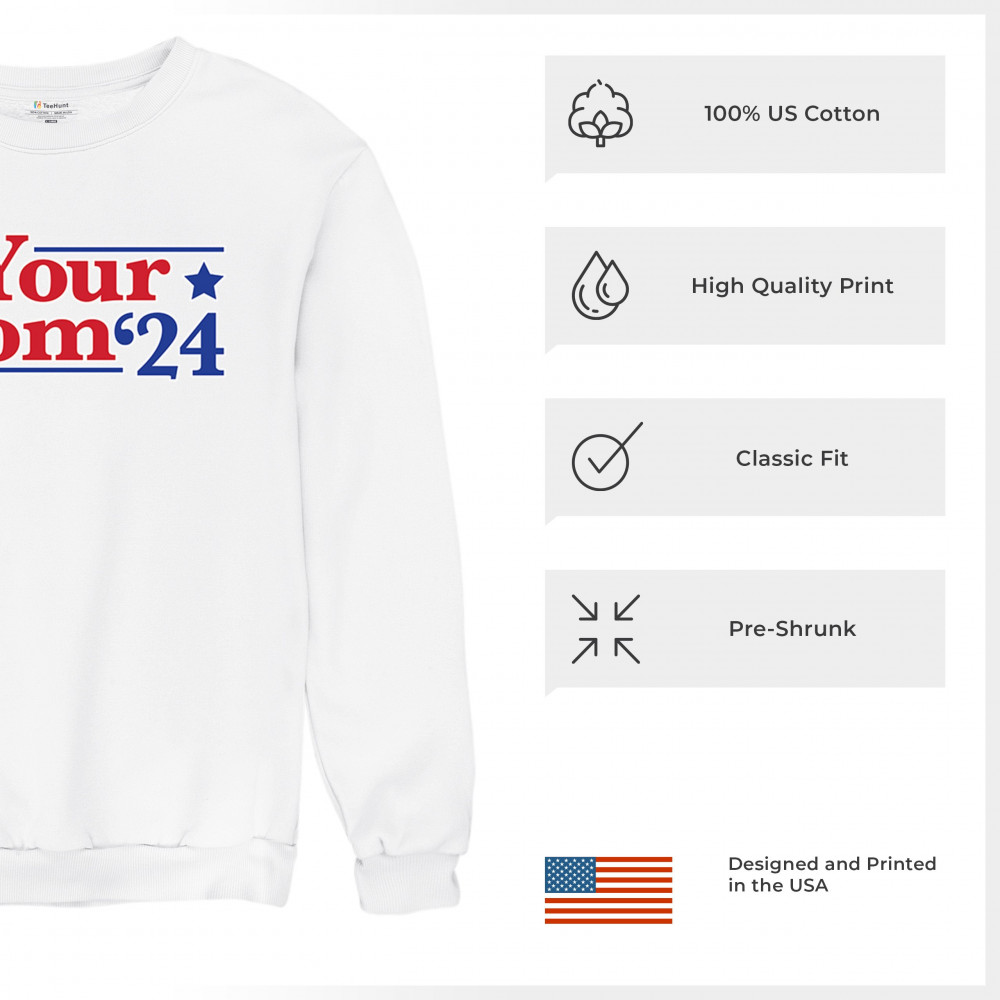 Show off your humor and style with the "Your Mom '24" design. Perfect for the 2024 election season, this design combines quality, comfort, and a playful political twist.