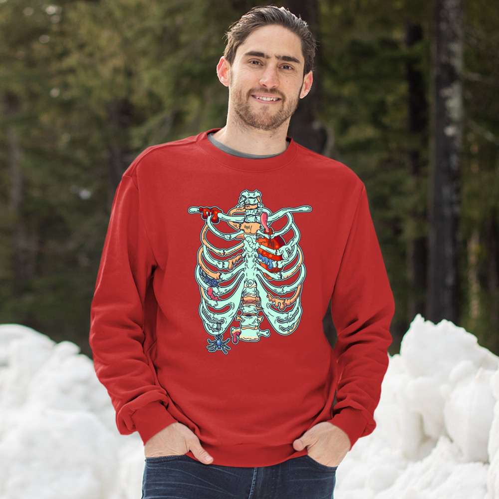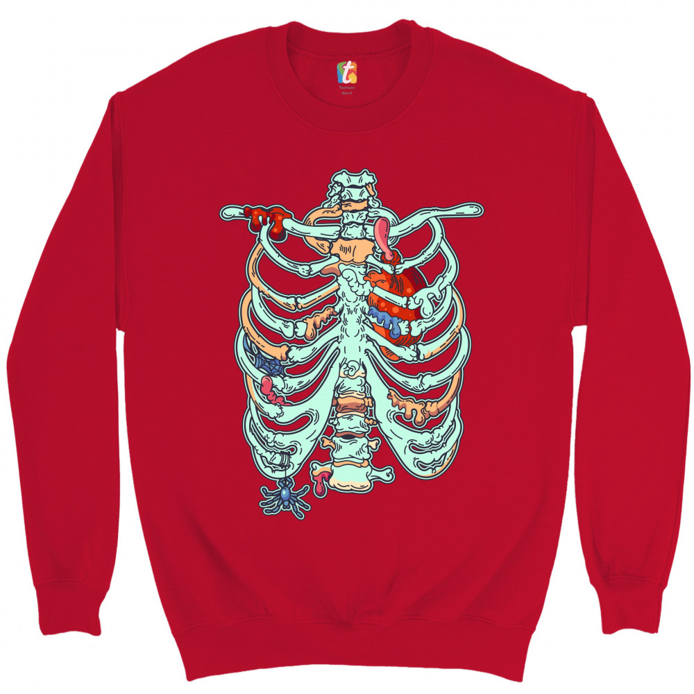 ZOMBIE RIB CAGE sweatshirt all hallows' eve spooky halloween skeleton crewneck red