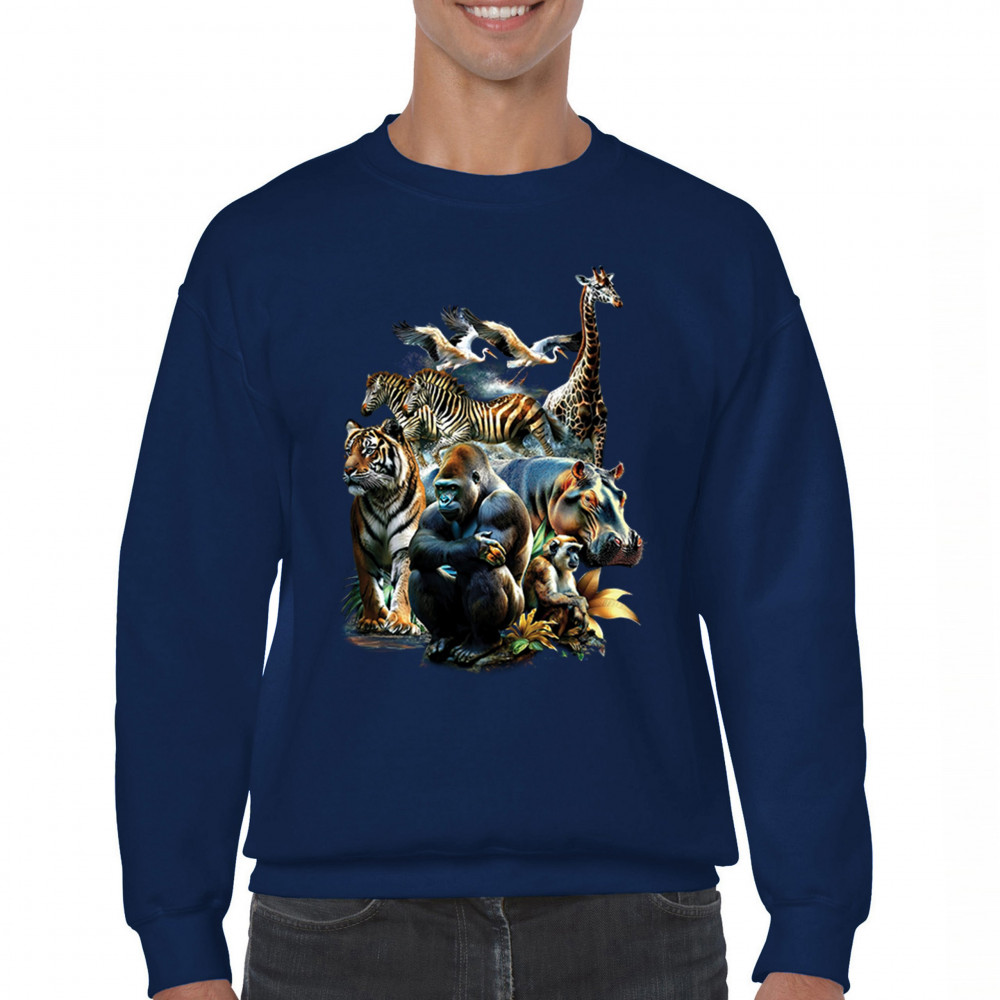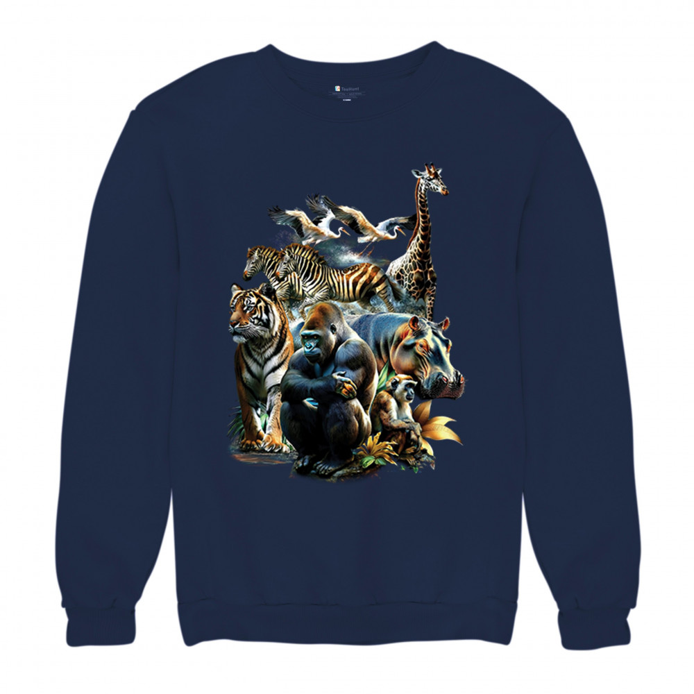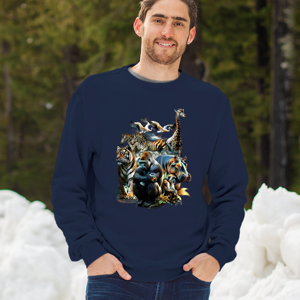 Packed with fierce energy and vibrant color, this wildlife design features a jungle coalition of gorilla, tiger, monkey, zebra, giraffe, hippo, and birds. A powerful tribute to animal beauty, biodiversity, and nature's harmony. Perfect for jungle tour enthusiasts, zoo visitors, or anyone passionate about wild conservation and stunning creature art.