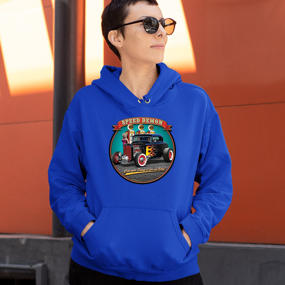 1932 DEUCE SPEED DEMON sweatshirt hot rod muscle car drag racing hoodie royal blue