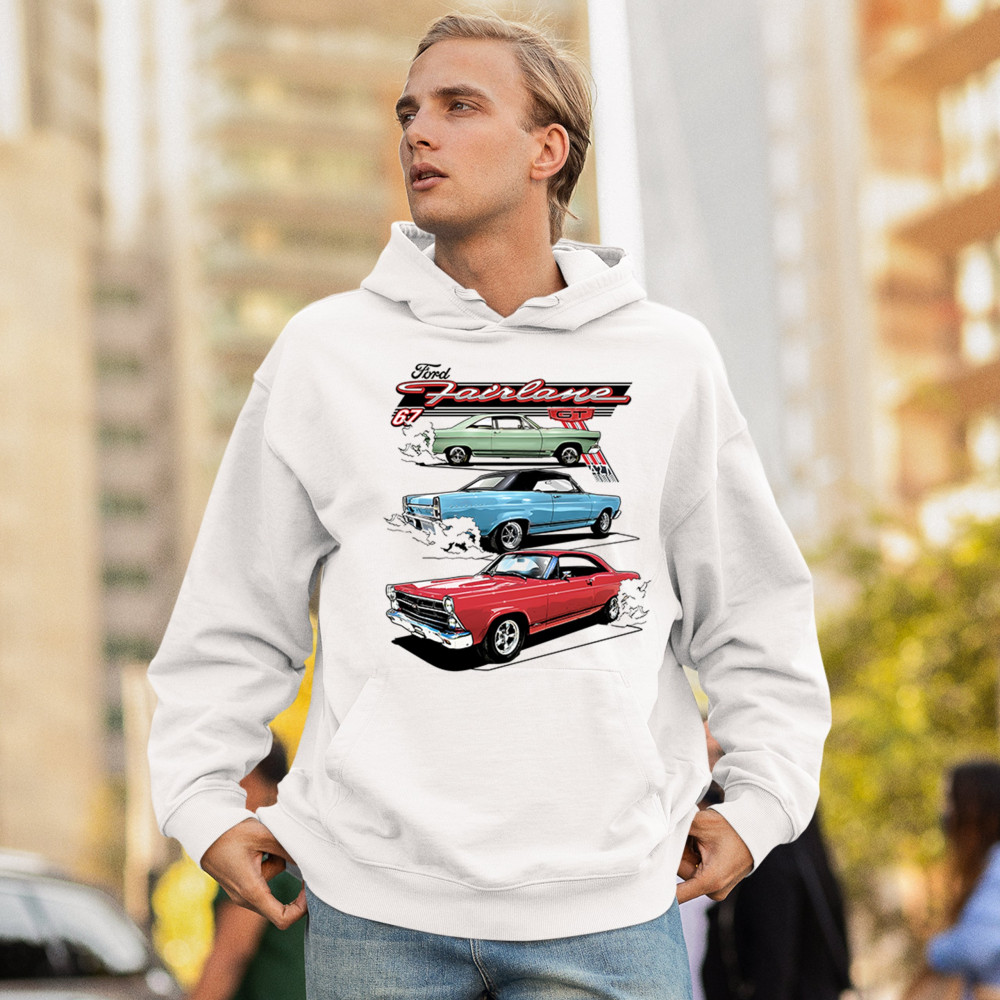 Celebrate the raw power of the 1967 Ford Fairlane GT with this burnout-charged design. Featuring three muscle cars in retro detail, it's made for vintage Ford collectors, classic car fans, and V8 enthusiasts. Whether you're heading to a show or wrenching in the garage, this design brings the roar of the 60s.