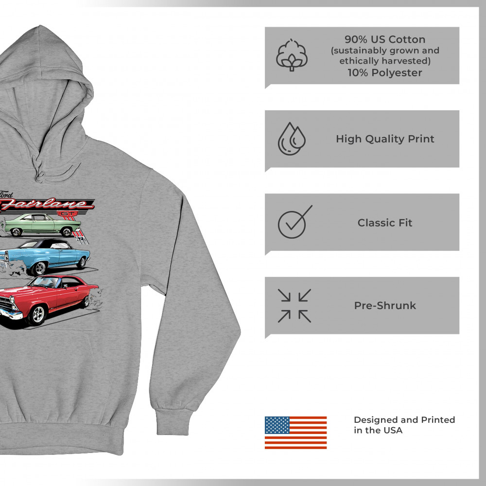 Features three 1967 Ford Fairlane GTs with retro burnout style. Great for muscle car fans, Ford collectors, car shows, and vintage meetups.