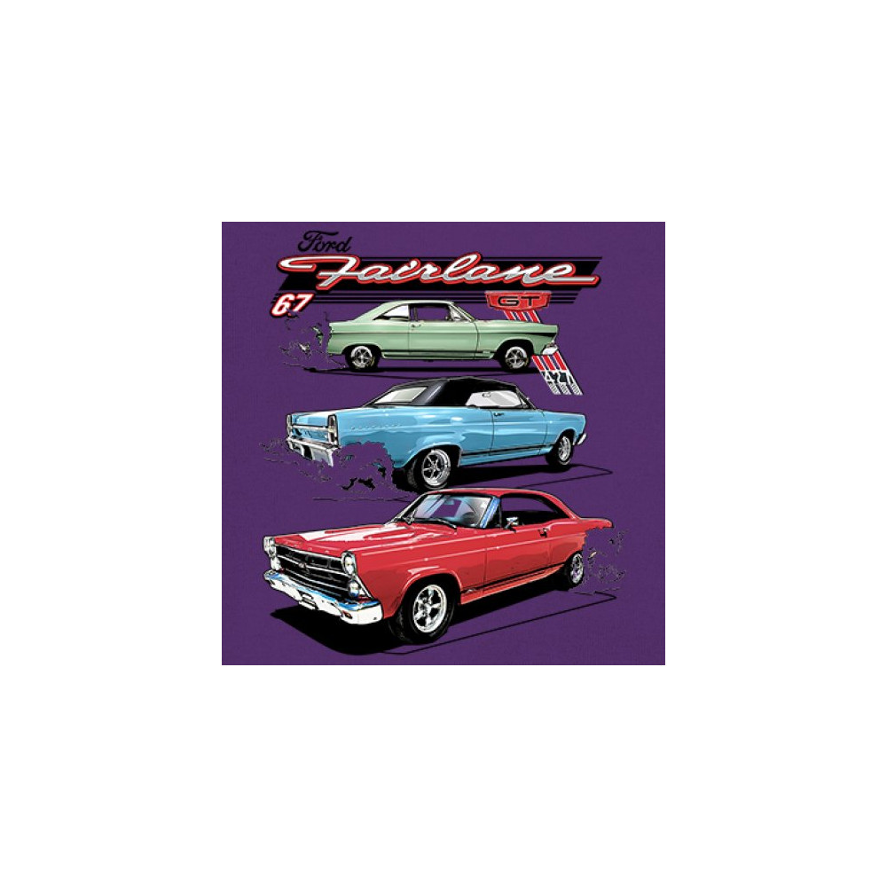 Features three 1967 Ford Fairlane GTs with retro burnout style. Great for muscle car fans, Ford collectors, car shows, and vintage meetups.