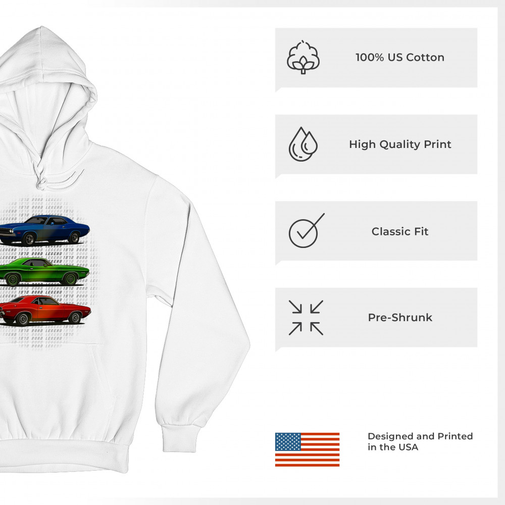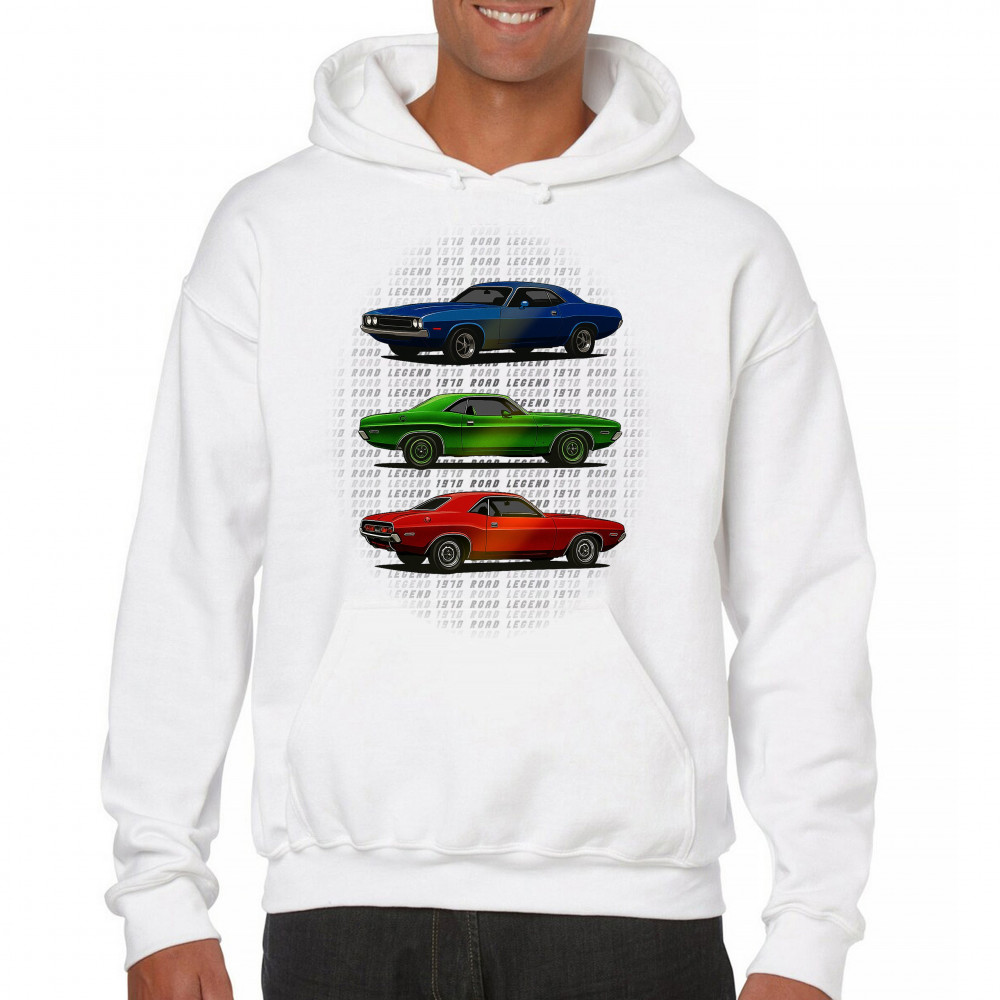 Three bold 1970 muscle cars, stacked in red, green, and blue, celebrate vintage power and road legend status. This retro-inspired design captures the essence of American car culture—made for gearheads, V8 fans, and anyone who lives for classic performance, heritage, and style.