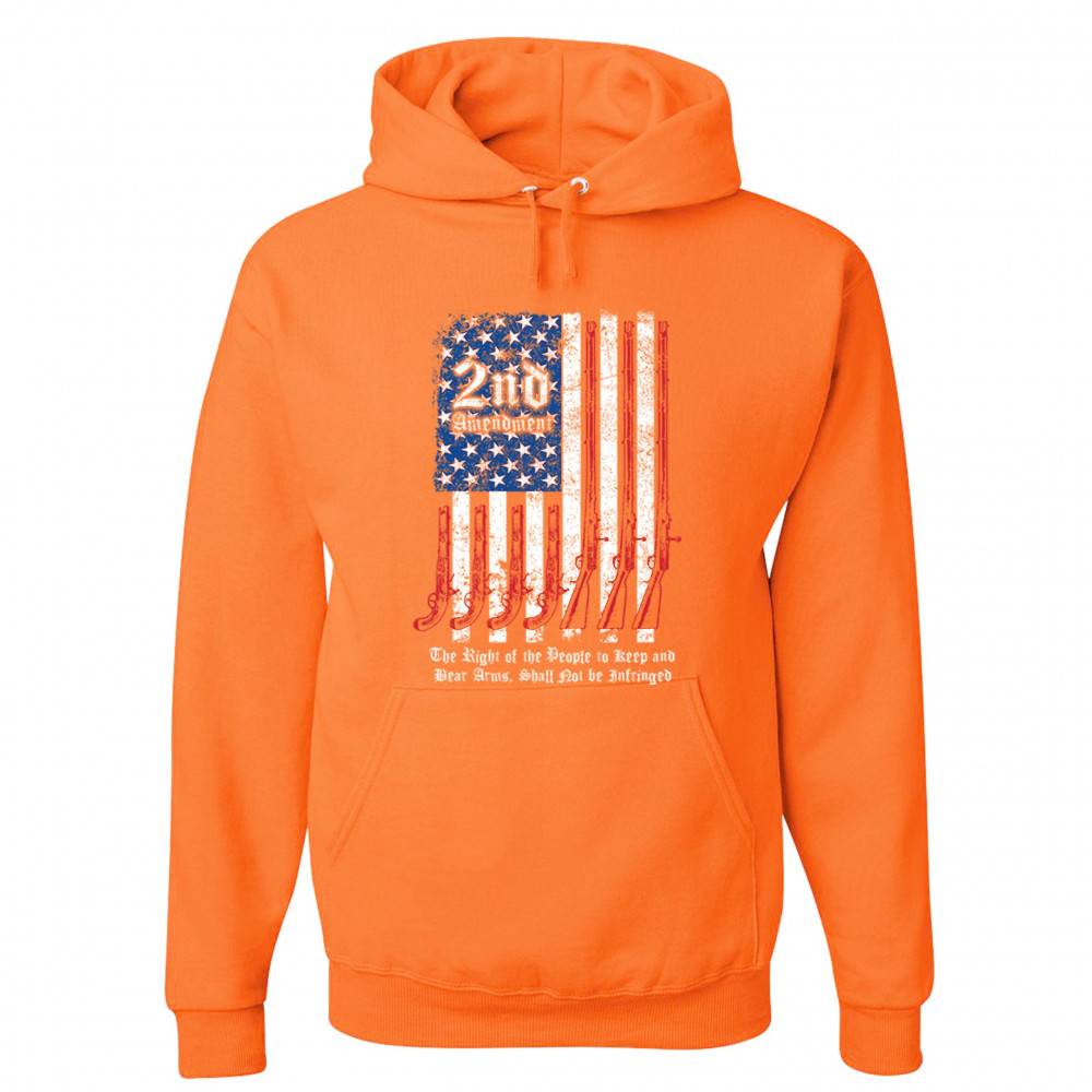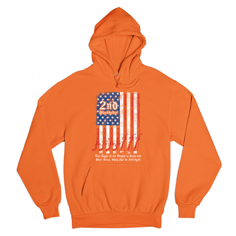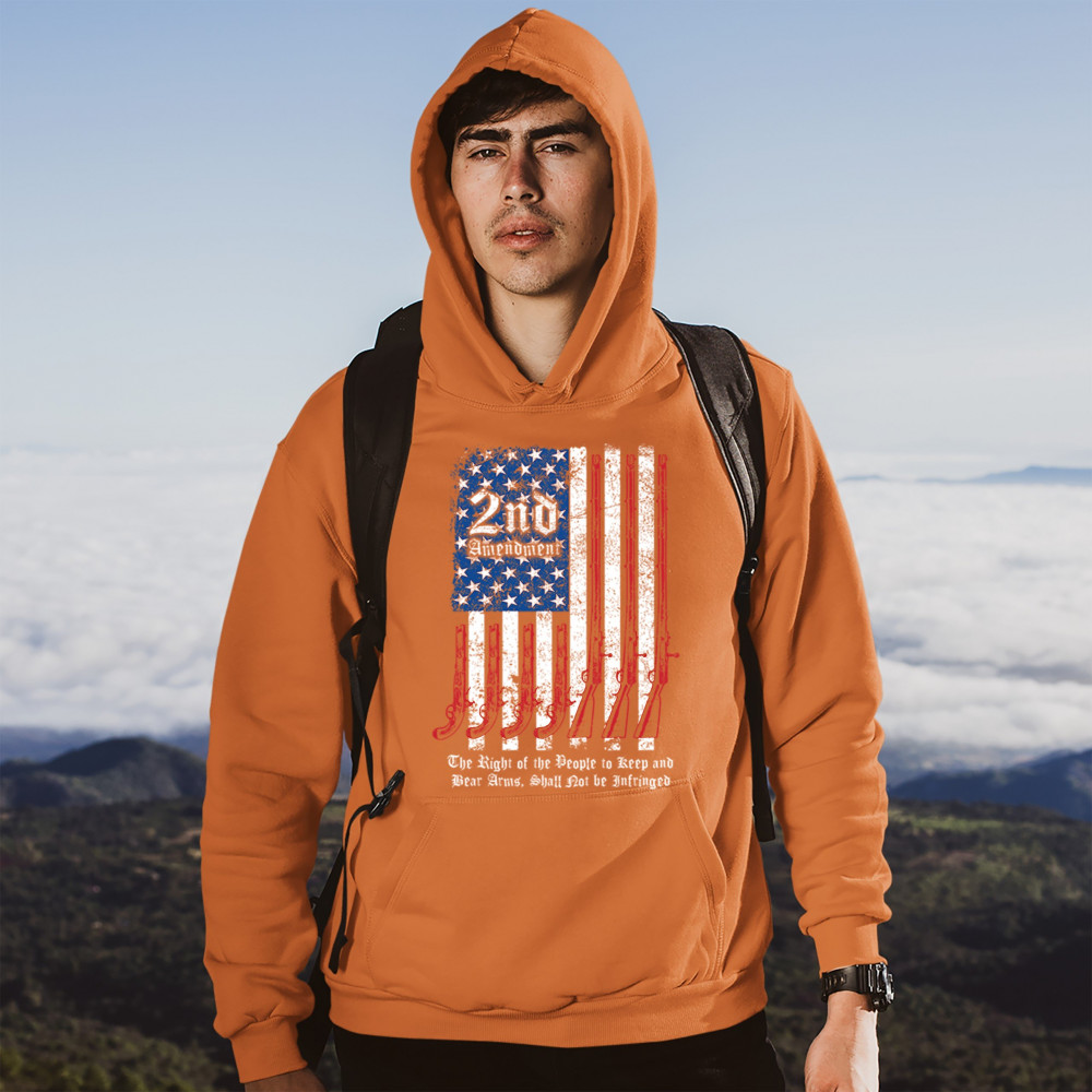 A print featuring a distressed American flag with pistols and muskets instead of red stripes. Atop of the 50 stars "2nd Amendment" is written. The print says: "The Right of the People to Keep and Bear Arms, Shall Not be Infringed ". Great choice for any g