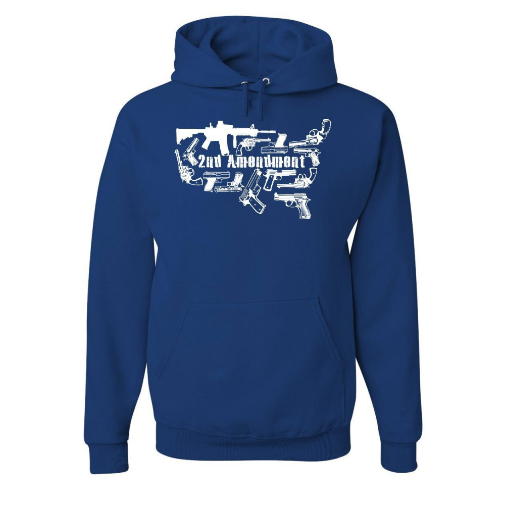 2ND AMENDMENT US SILHOUETTE hoodie right to bear arms 2a guns sweatshirt royal blue