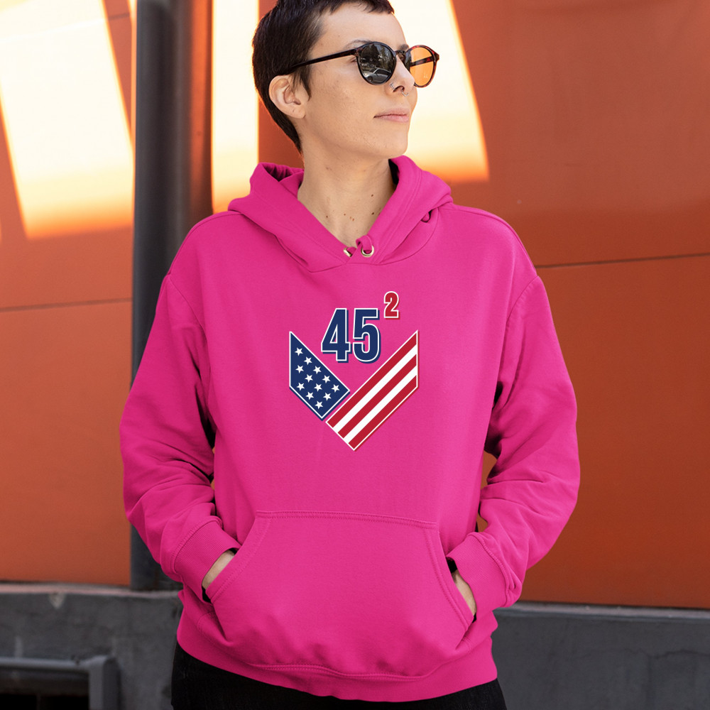 45 SQUARED sweatshirt two terms re-elect donald trump conservative hoodie pink