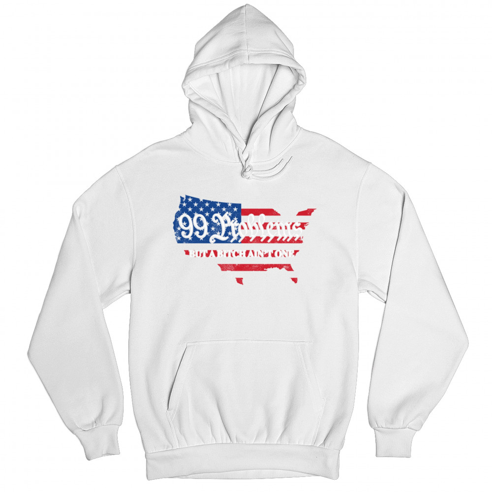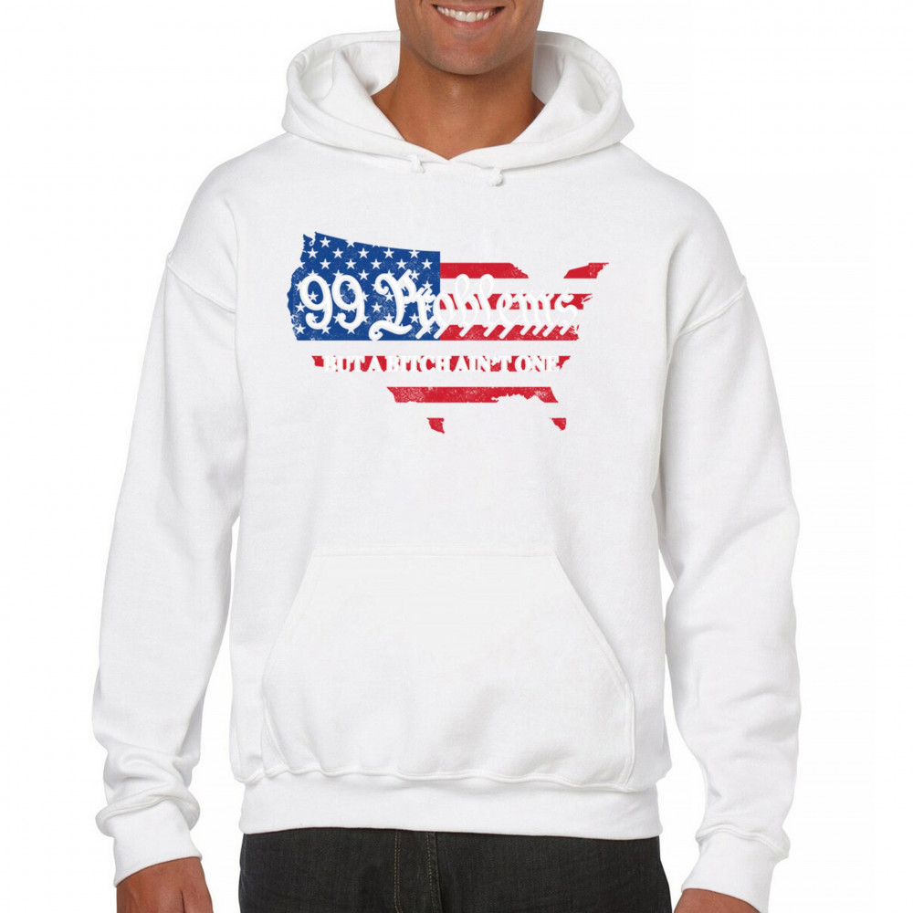 Embrace your patriotic spirit with this striking "99 Problems But a B*tch Ain't One" design, blending the American map and flag-inspired elements. Perfect for Trump supporters, conservatives, and all who believe in the values of freedom, victory, and the Republican Red Wave. Celebrate your commitment to America and make a statement that reflects your unwavering belief in the people's mandate and the party of common sense.