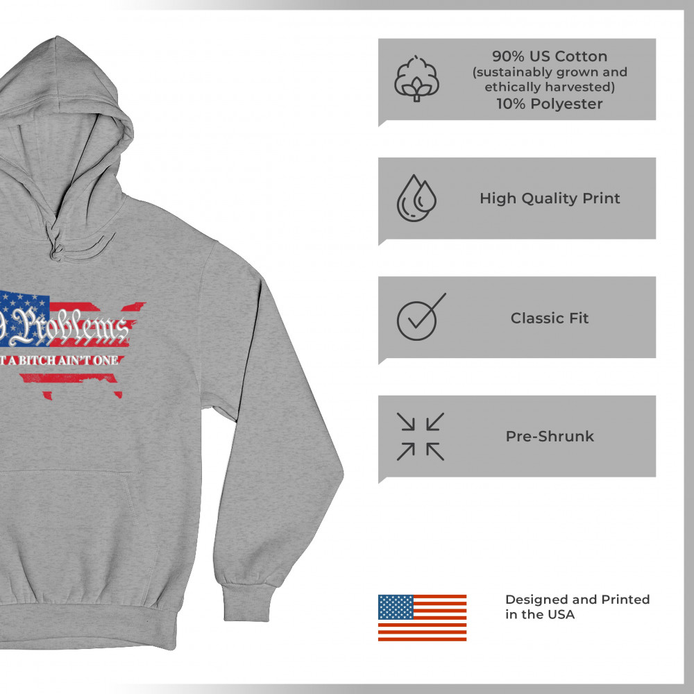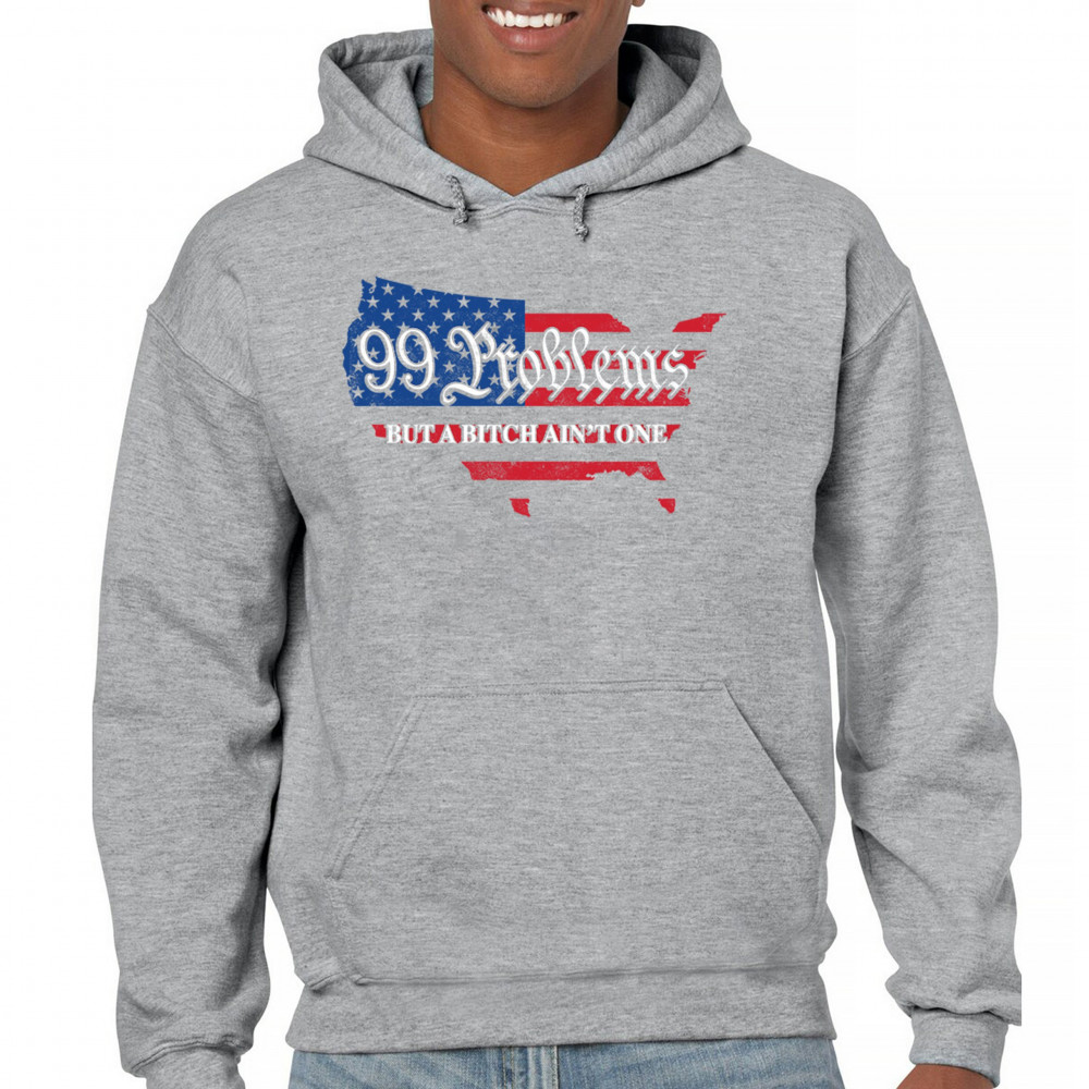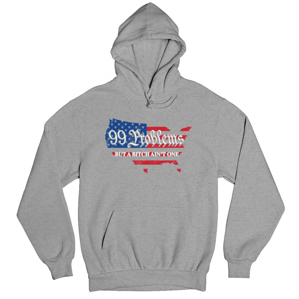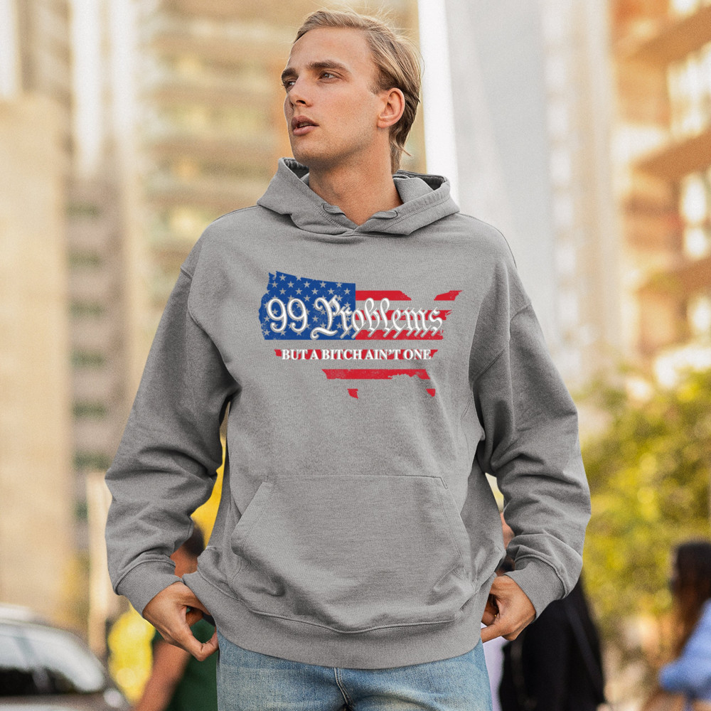 Embrace your patriotic spirit with this striking "99 Problems But a B*tch Ain't One" design, blending the American map and flag-inspired elements. Perfect for Trump supporters, conservatives, and all who believe in the values of freedom, victory, and the Republican Red Wave. Celebrate your commitment to America and make a statement that reflects your unwavering belief in the people's mandate and the party of common sense.