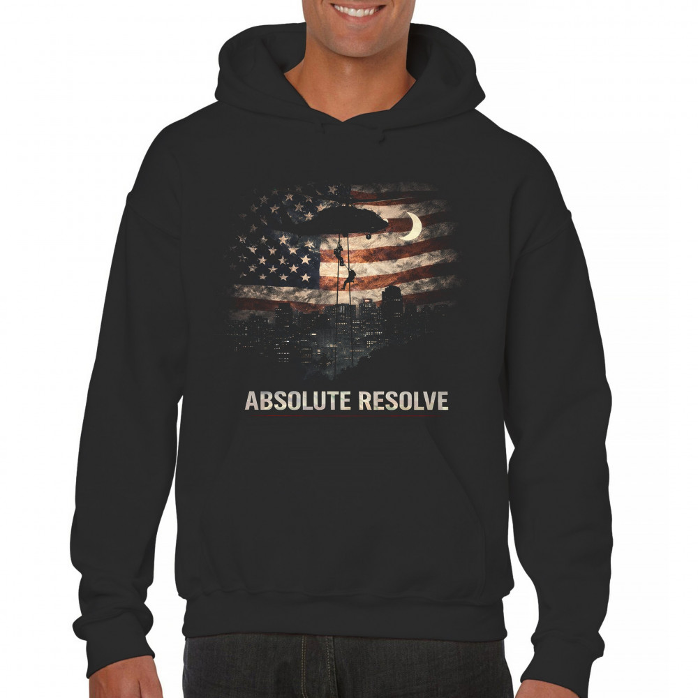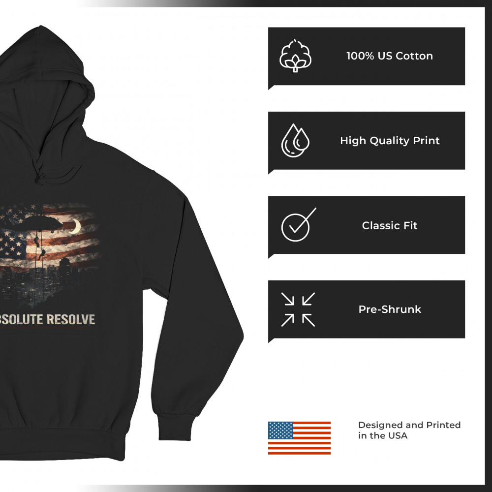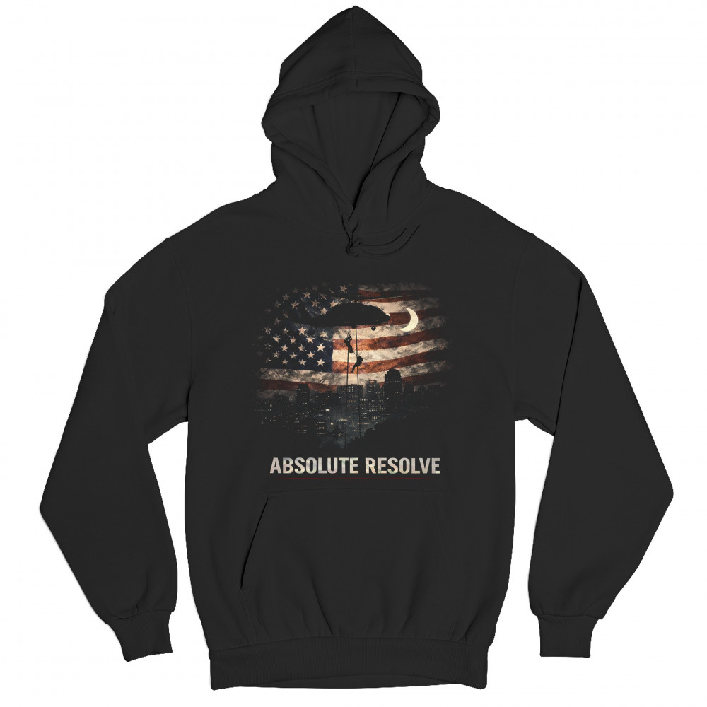 ABSOLUTE RESOLVE unisex hoodie american military forces usa patriotic black
