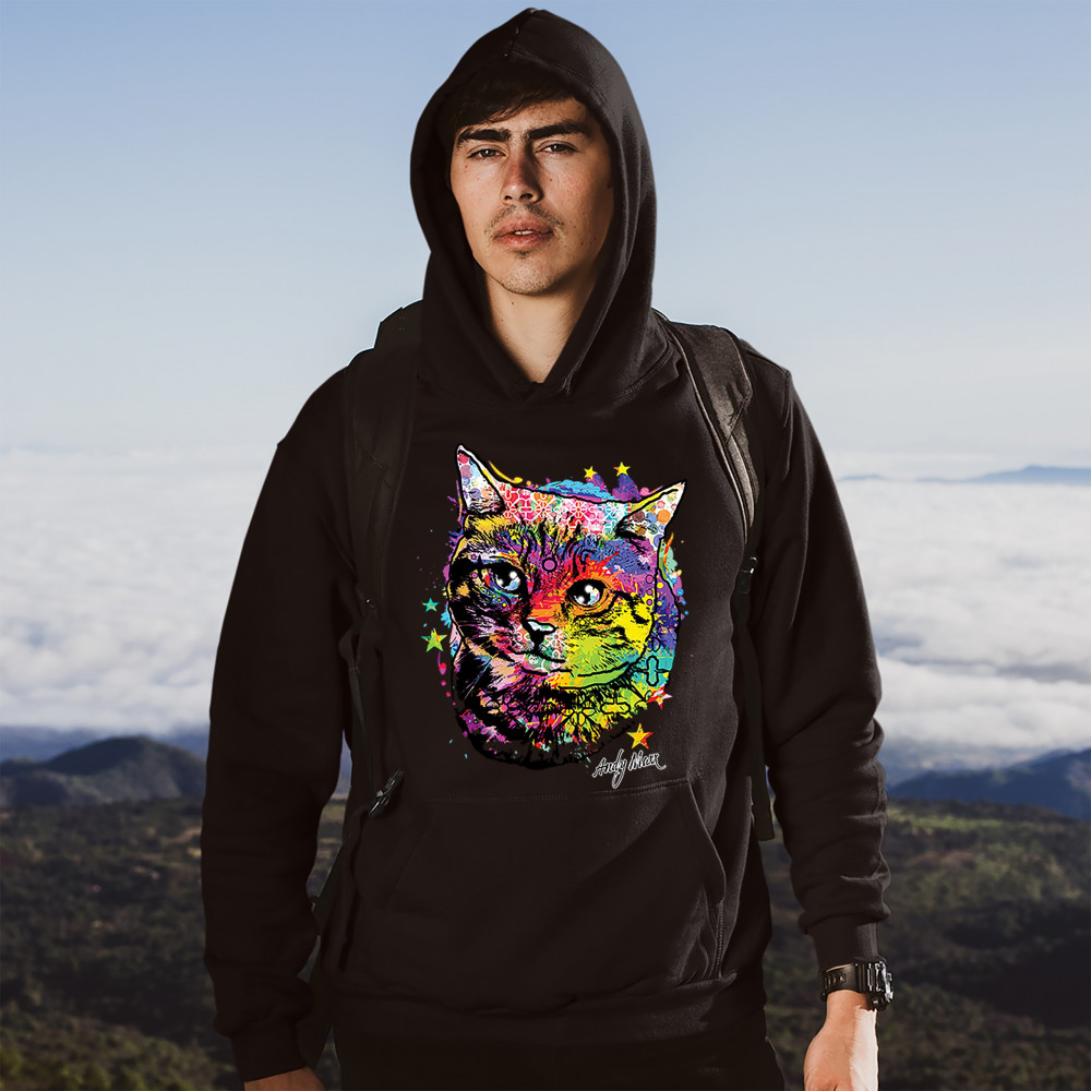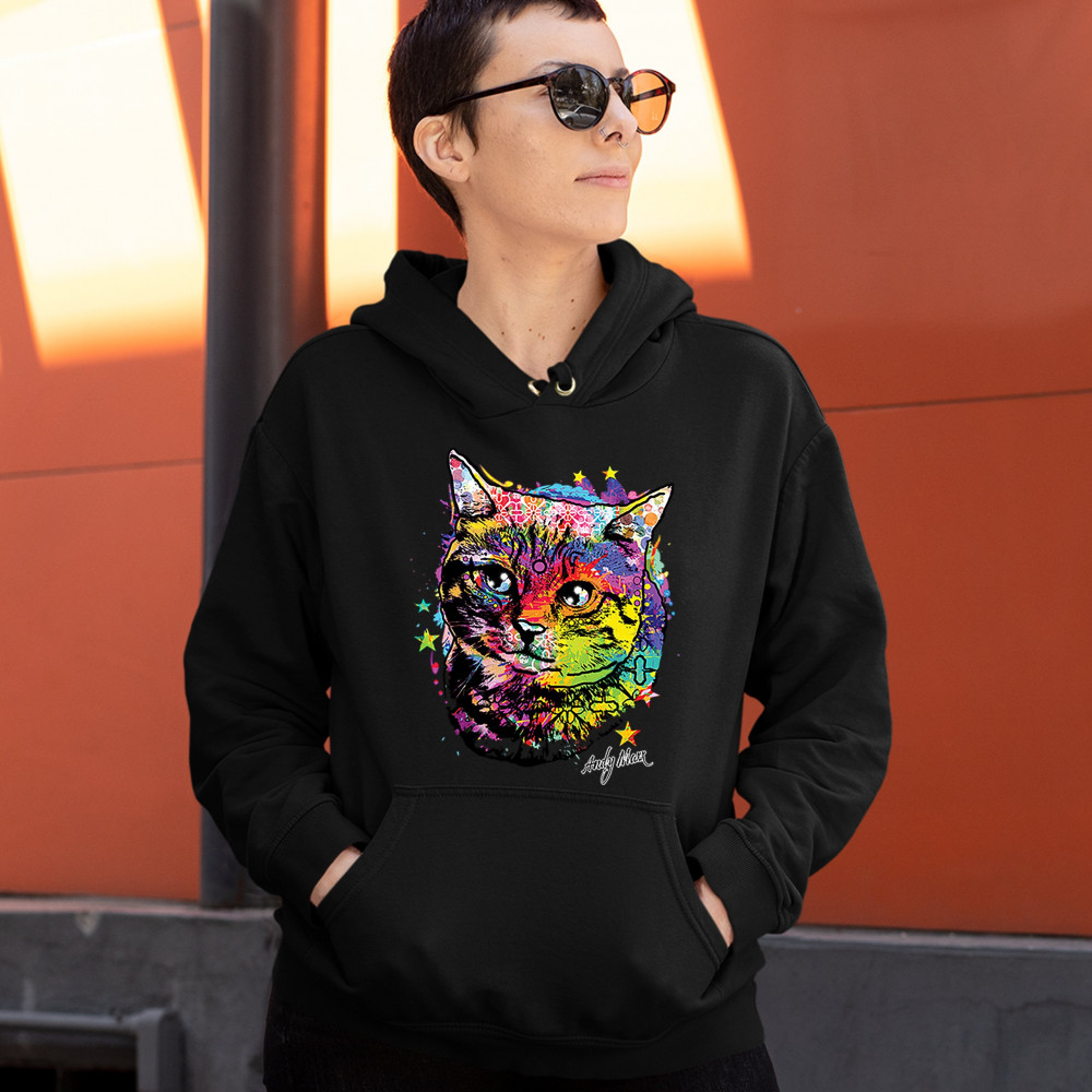 ADORABLE KITTEN sweatshirt neon multicolor kitty andy maxx cat lover hoodie black