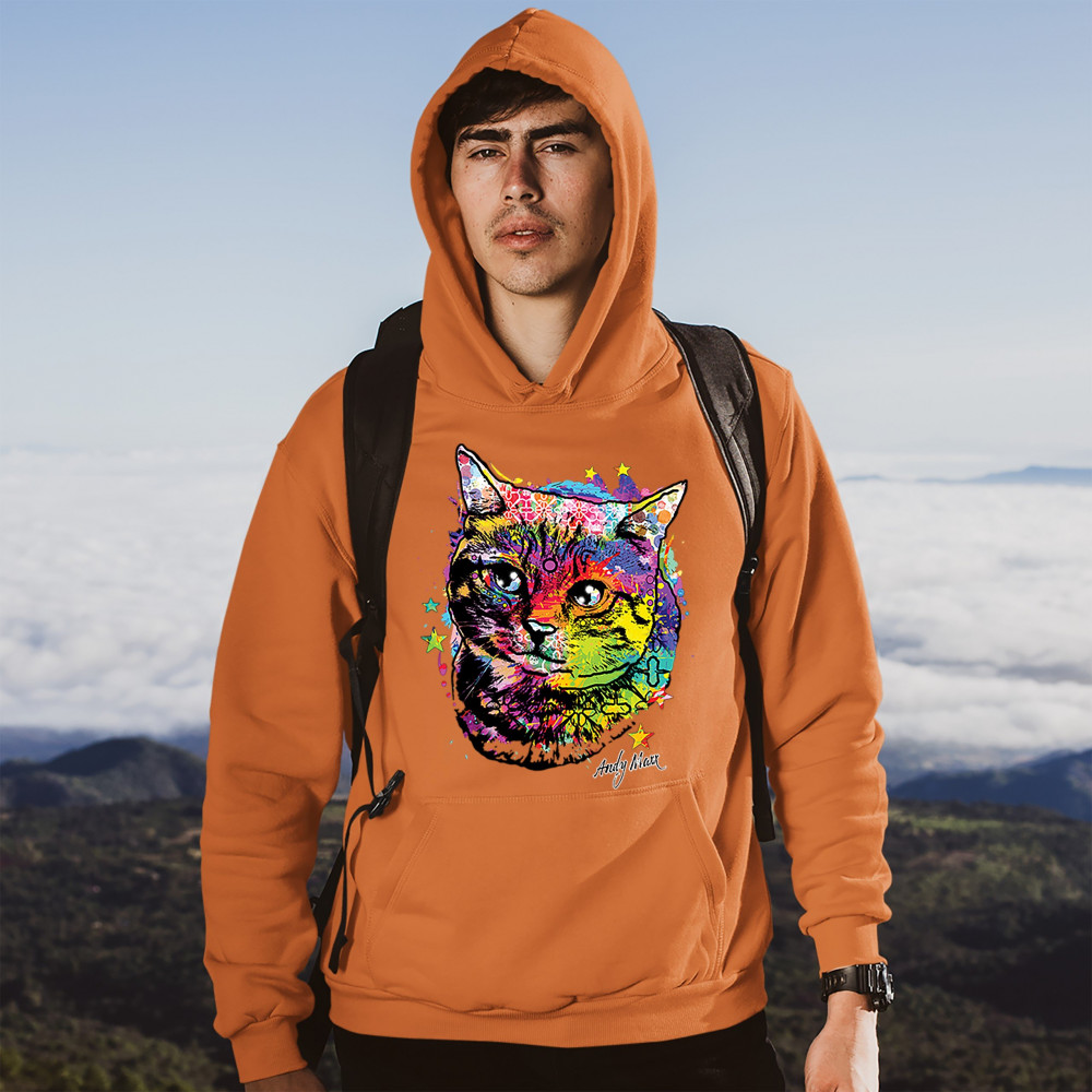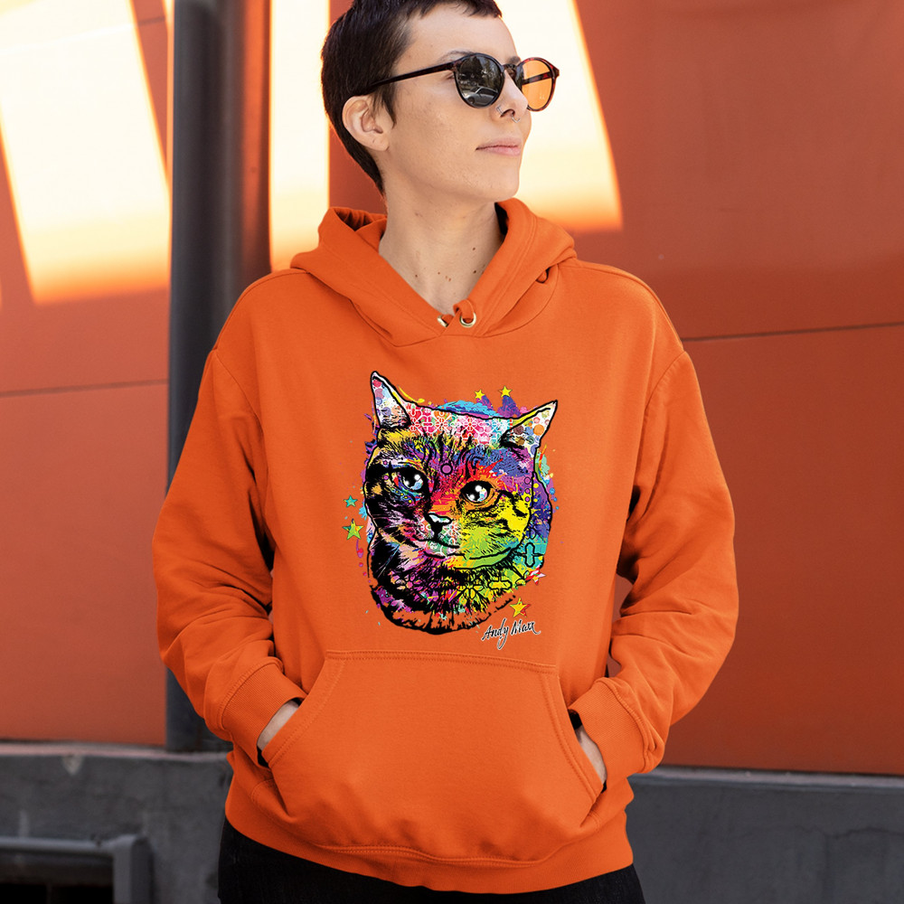 ADORABLE KITTEN sweatshirt neon multicolor kitty andy maxx cat lover hoodie orange
