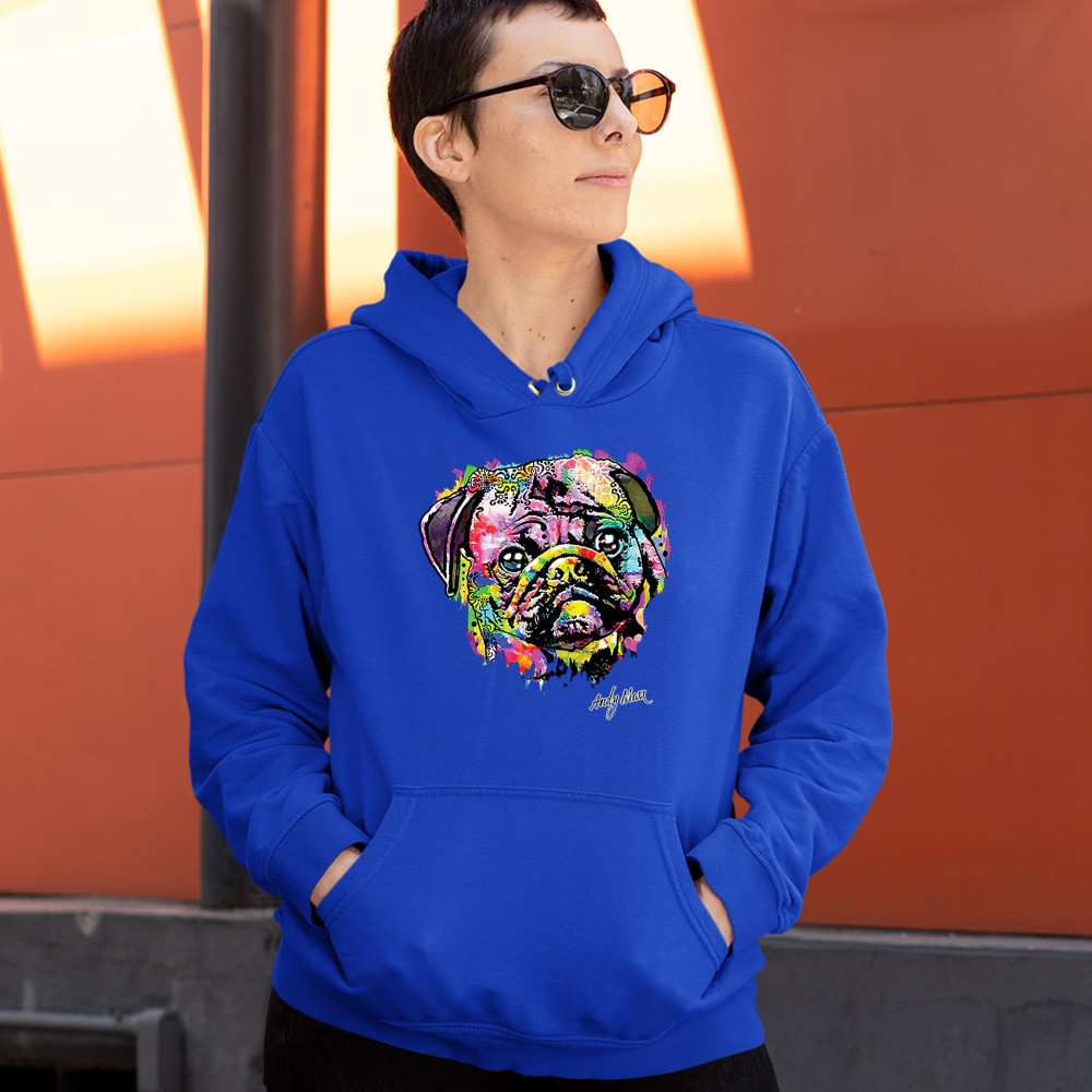 ADORABLE PUG sweatshirt andy maxx pet owner i love my dog doggie hoodie royal blue