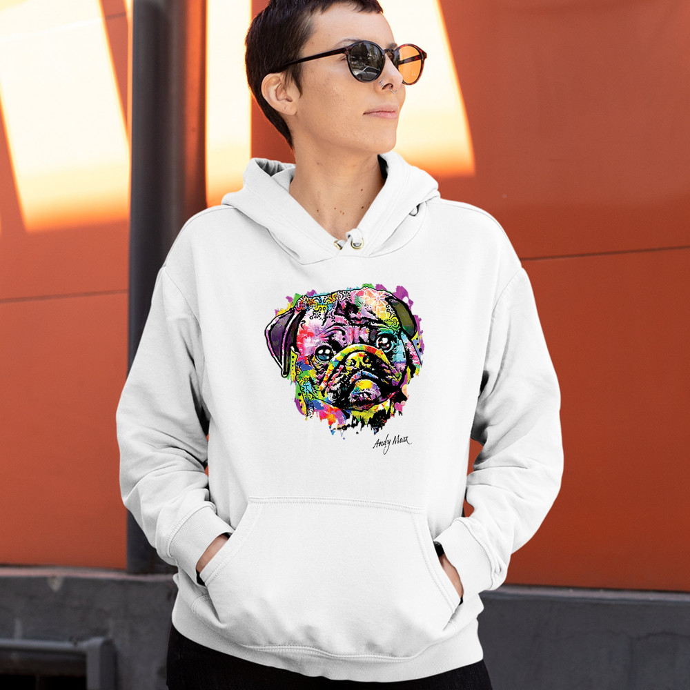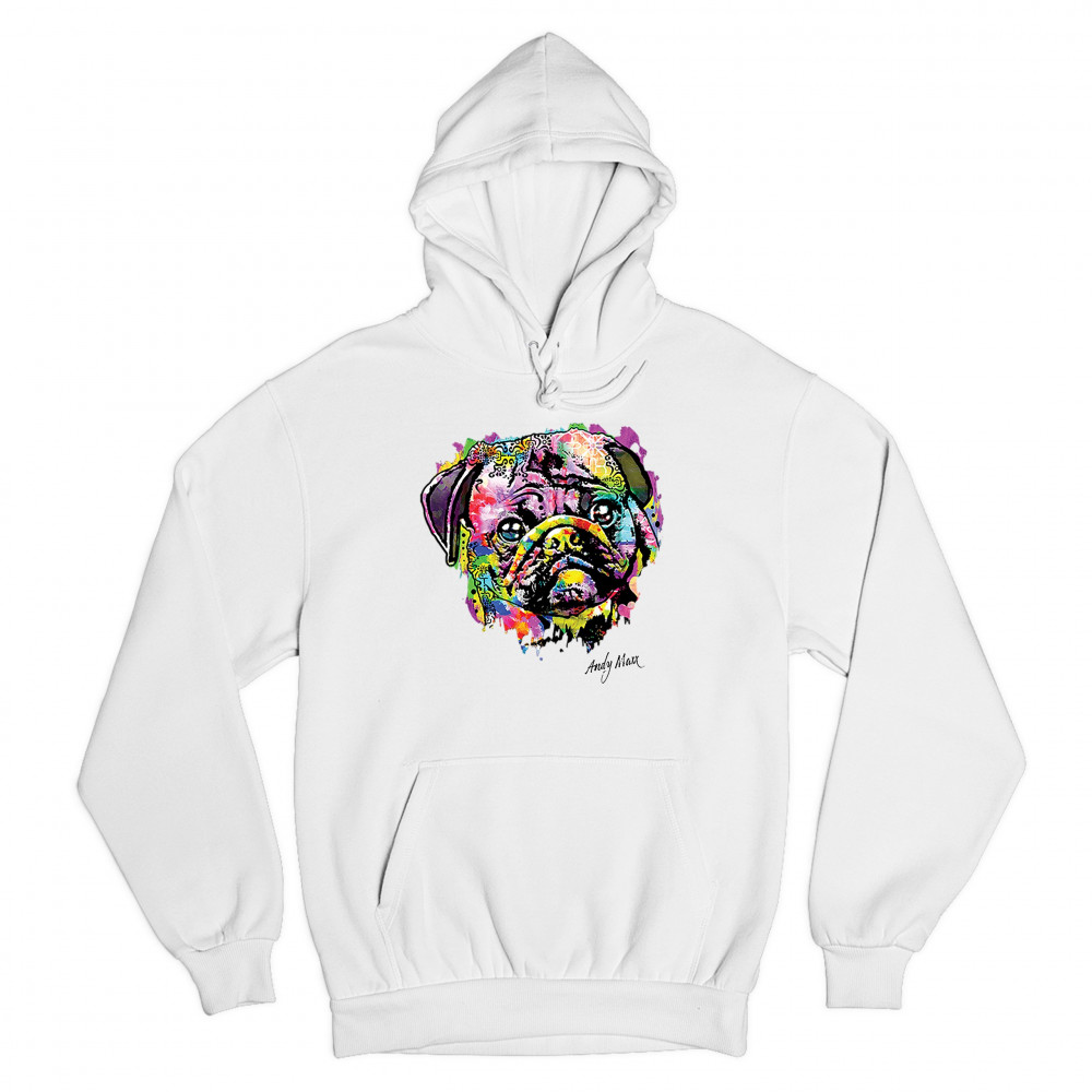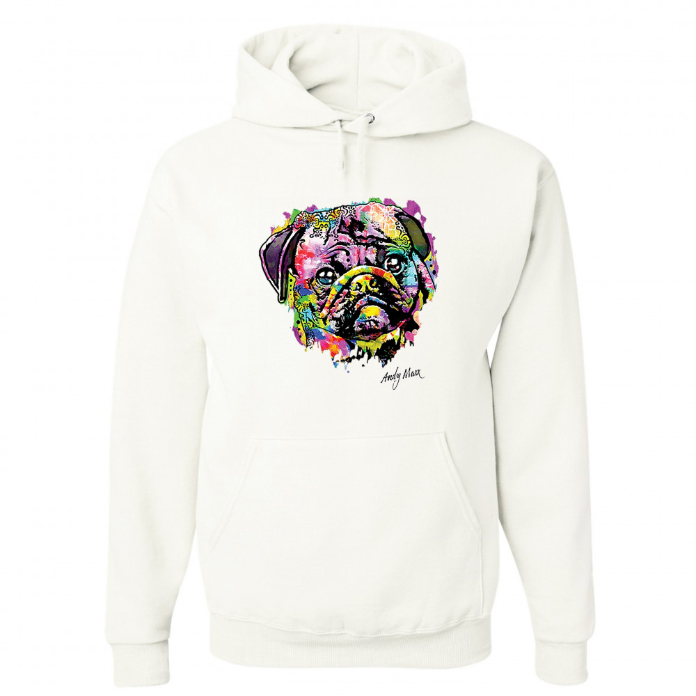 ADORABLE PUG sweatshirt andy maxx pet owner i love my dog doggie hoodie white