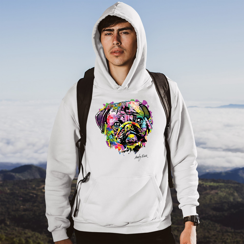 A beautiful print featuring a colorful face of an adorable pug. Below the dog the name of the artist - Andy Maxx - is included. A great choice for a person who is in love with these adorable and gentle dogs.
