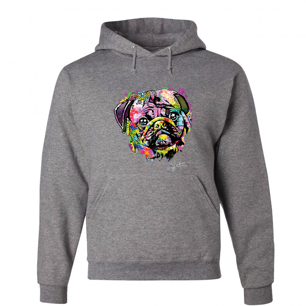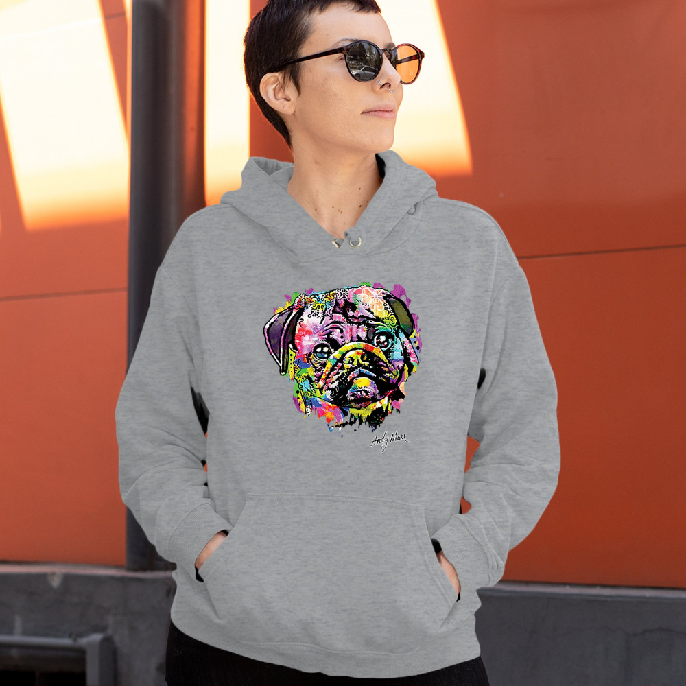 ADORABLE PUG sweatshirt andy maxx pet owner i love my dog doggie hoodie gray