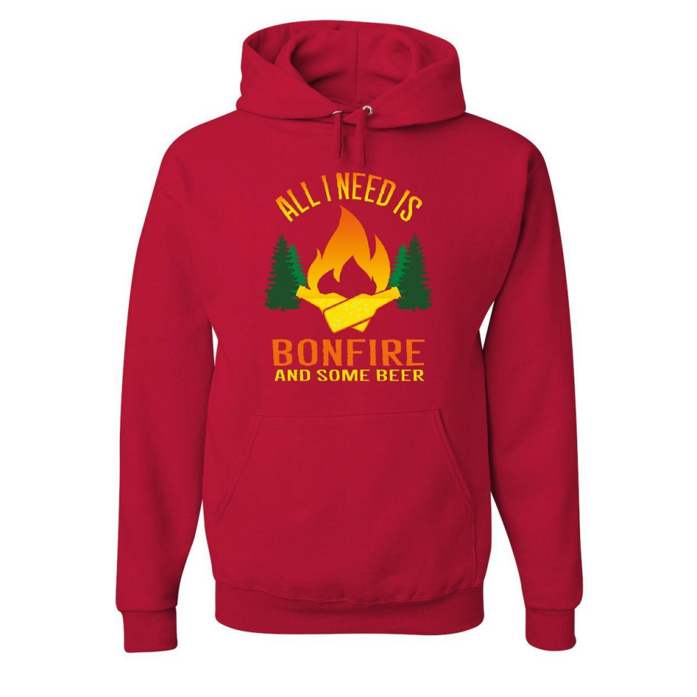 ALL I NEED IS BONFIRE & SOME BEER hoodie funny camping drinking sweatshirt red