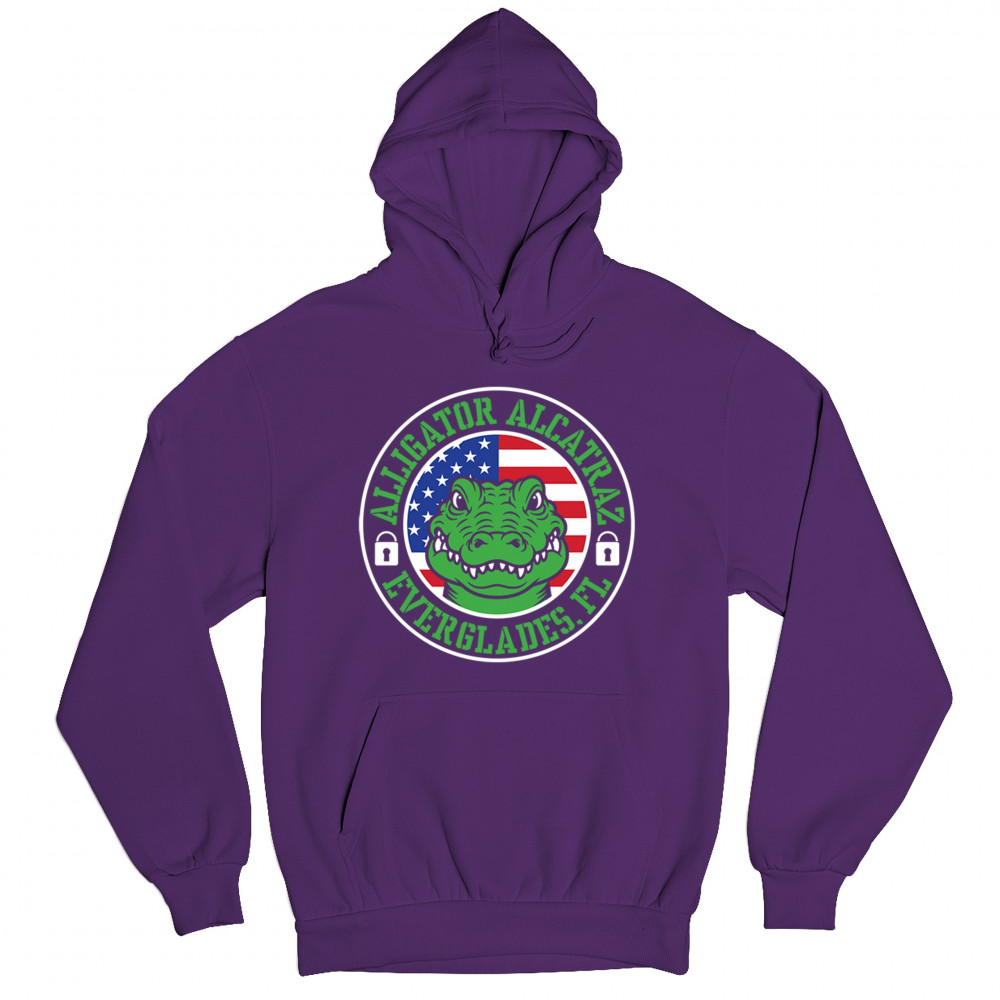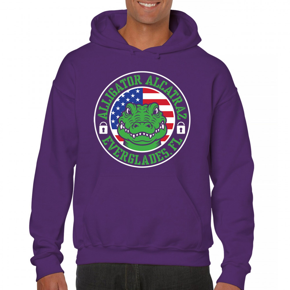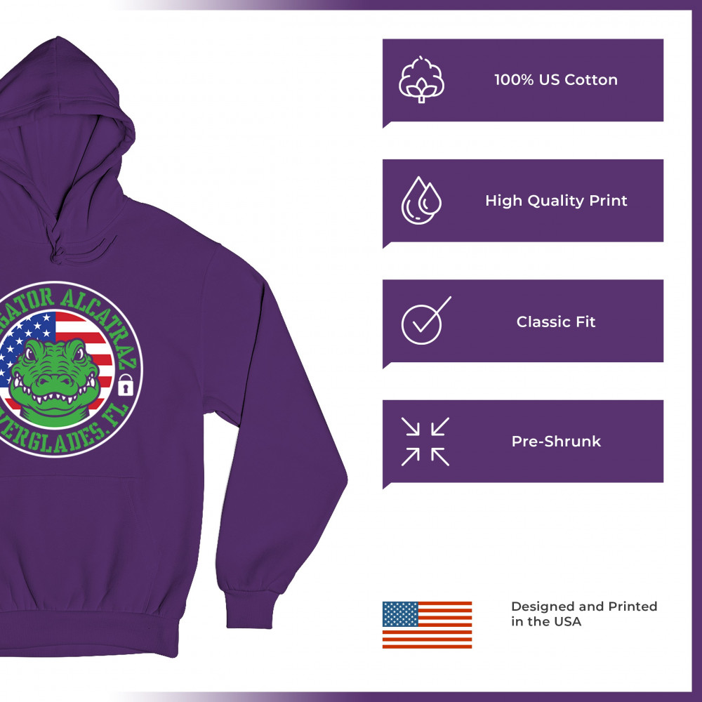 Bold Alligator Alcatraz design with USA flag and conservative message. Patriotic, America First, and proud to take a stand for national values.