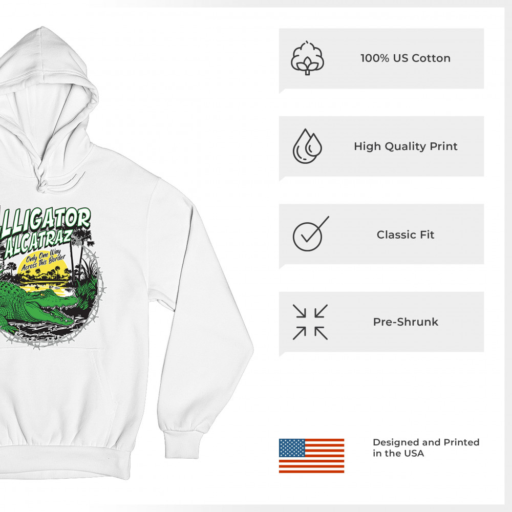Alligator Alcatraz design with border security message. For conservative, Republican, and patriotic Americans who stand for America First values.