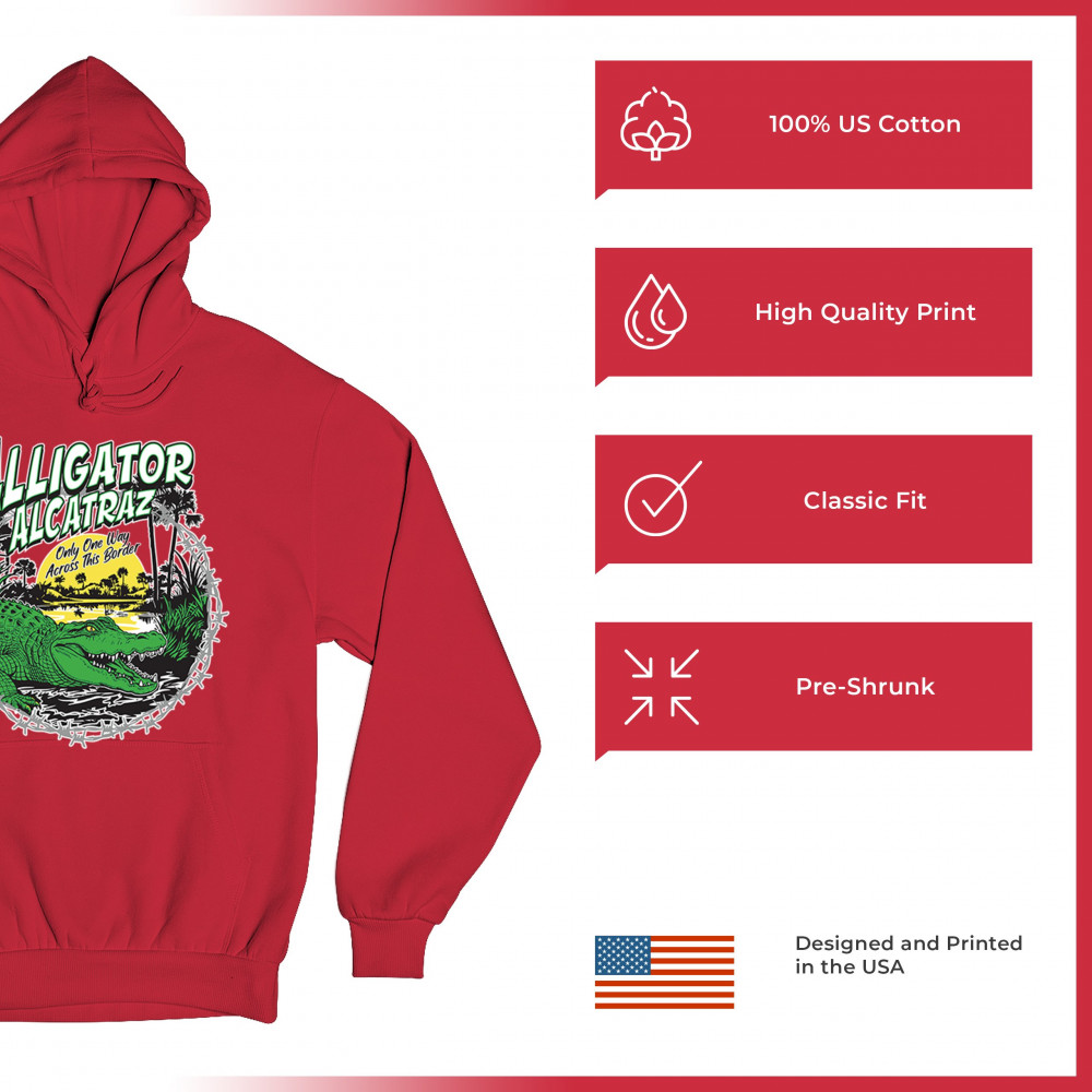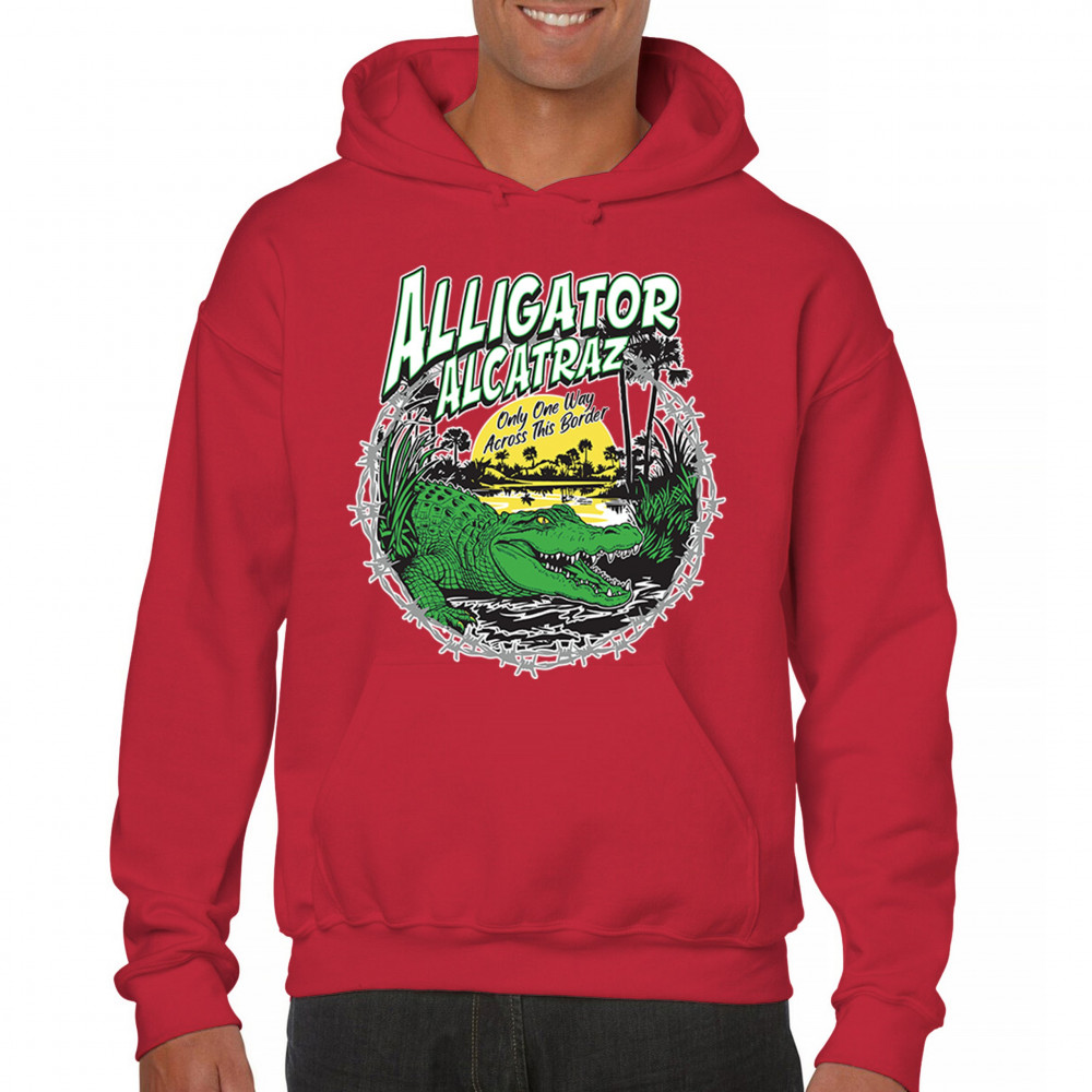 Alligator Alcatraz design with border security message. For conservative, Republican, and patriotic Americans who stand for America First values.