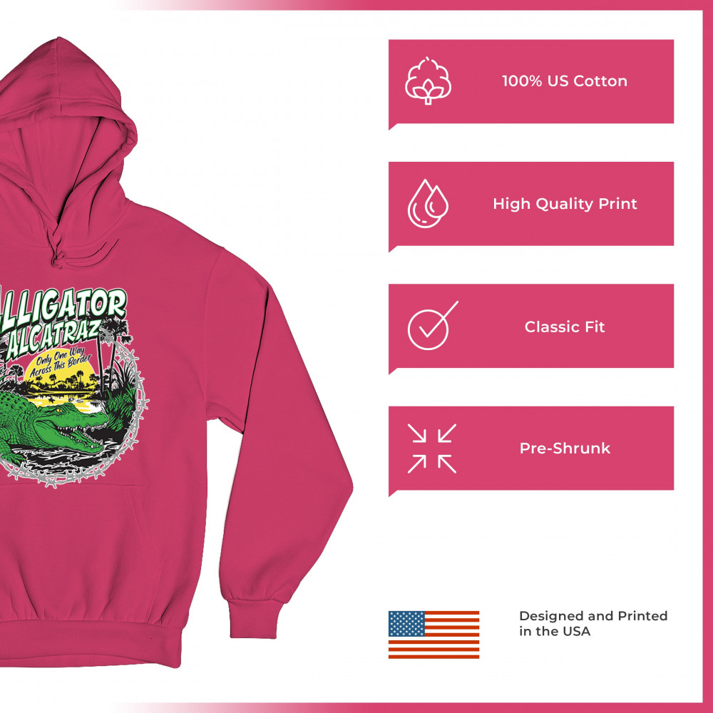 Alligator Alcatraz design with border security message. For conservative, Republican, and patriotic Americans who stand for America First values.