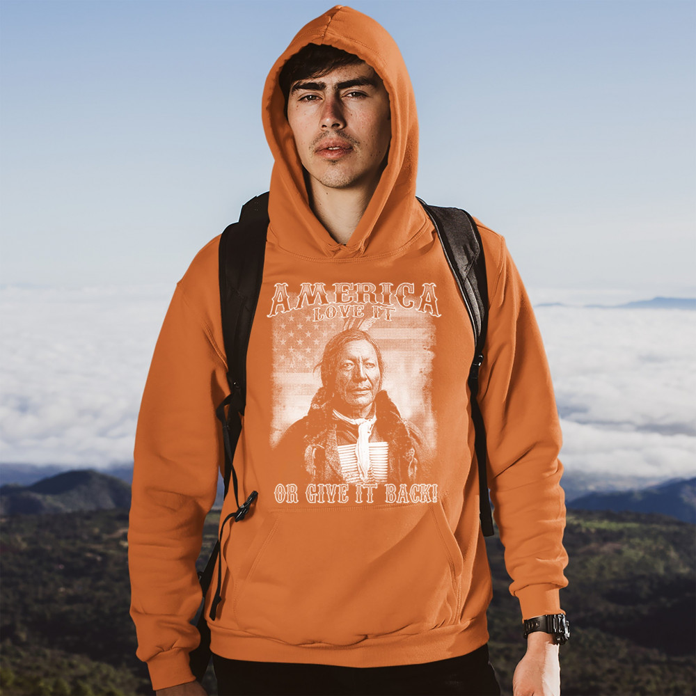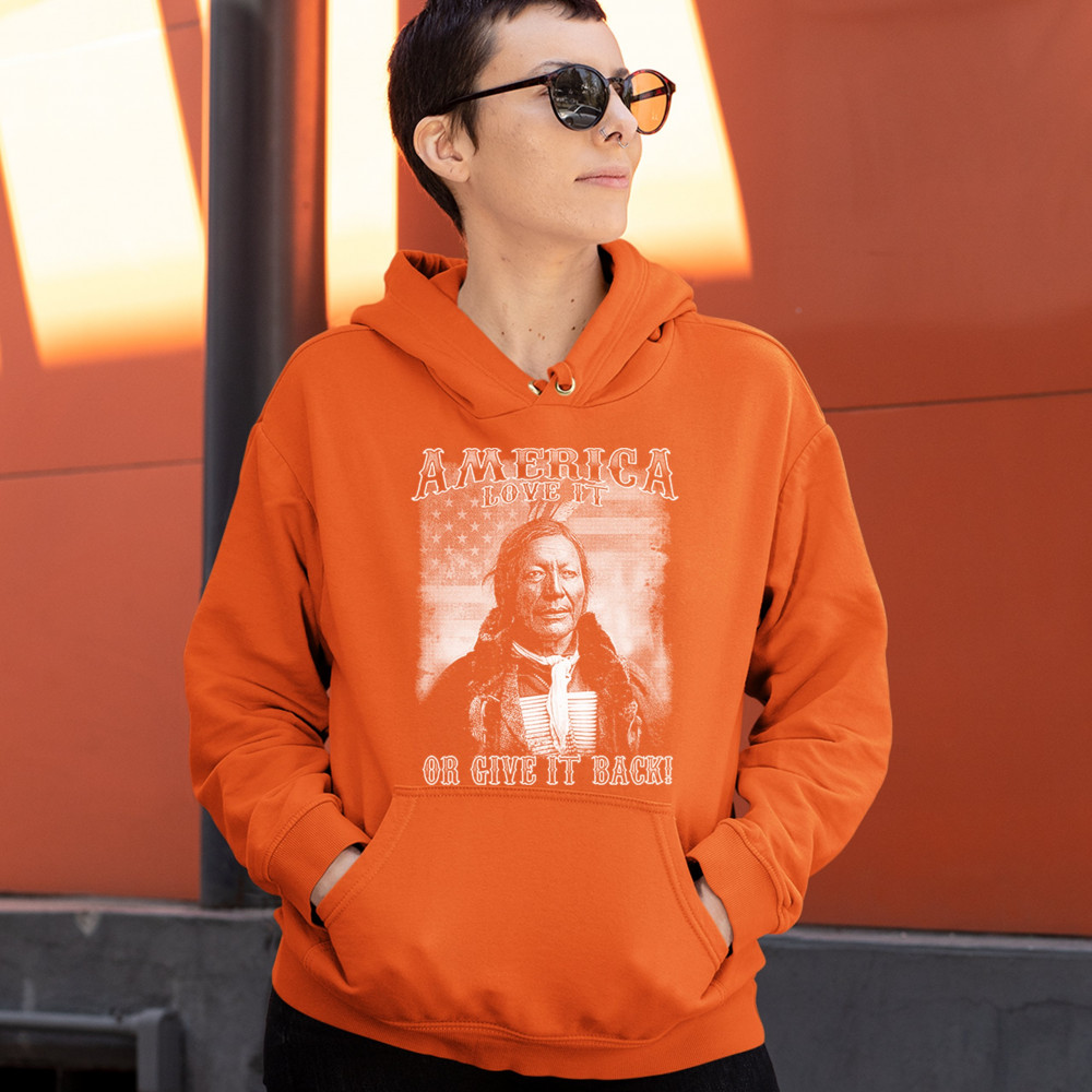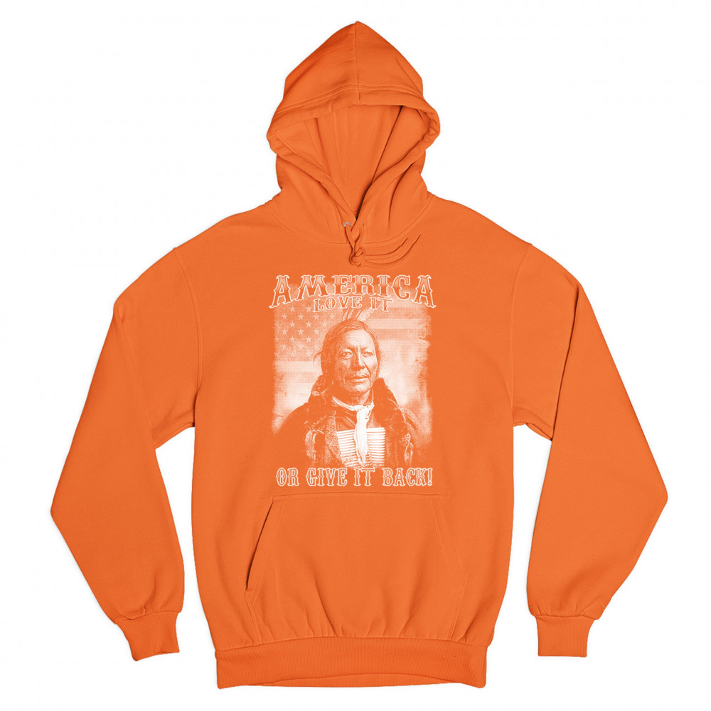 AMERICA LOVE IT OR GIVE IT BACK sweatshirt native american chief hoodie orange