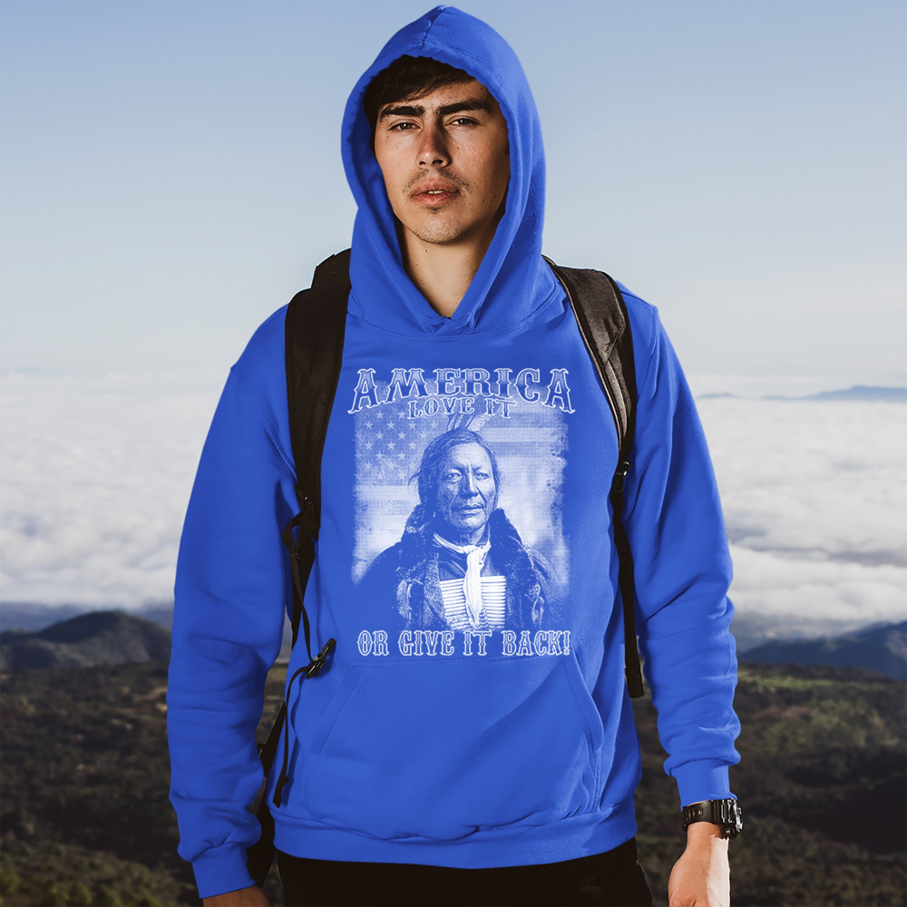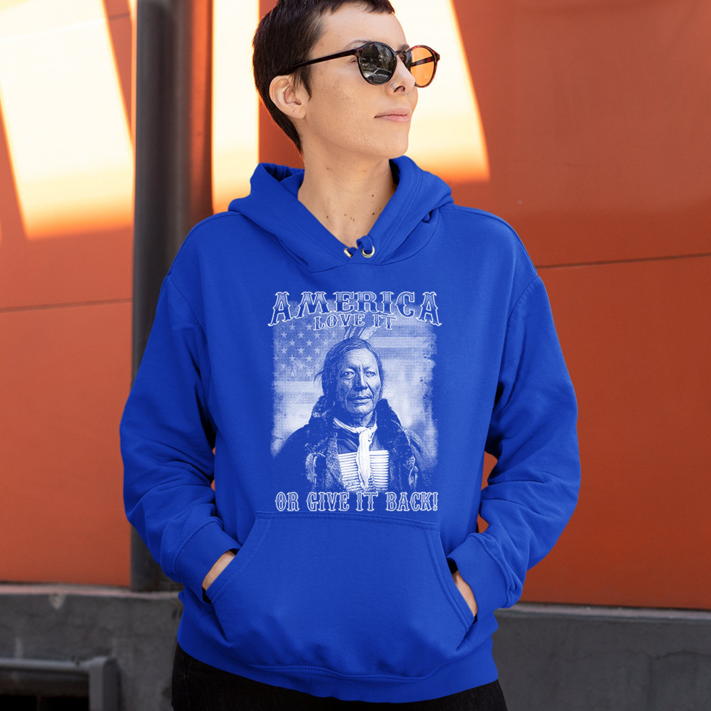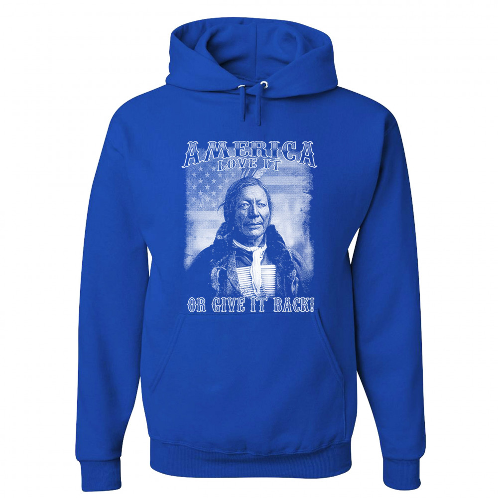 AMERICA LOVE IT OR GIVE IT BACK sweatshirt native american chief hoodie royal blue