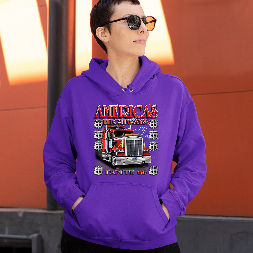 AMERICA'S HIGHWAYS ROUTE 66 sweatshirt truck driver mechanic teamster hoodie purple