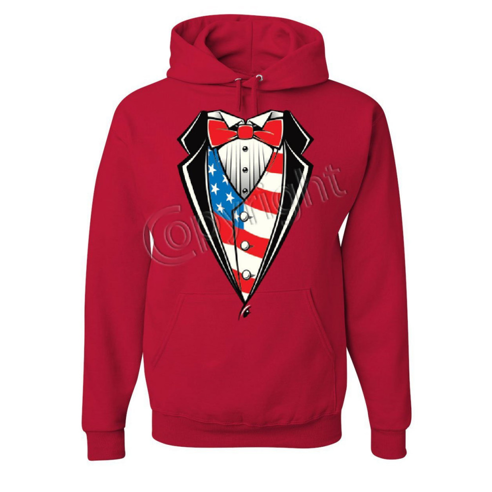 AMERICAN FLAG TUXEDO hoodie funny 4th of july stars and stripes sweatshirt red