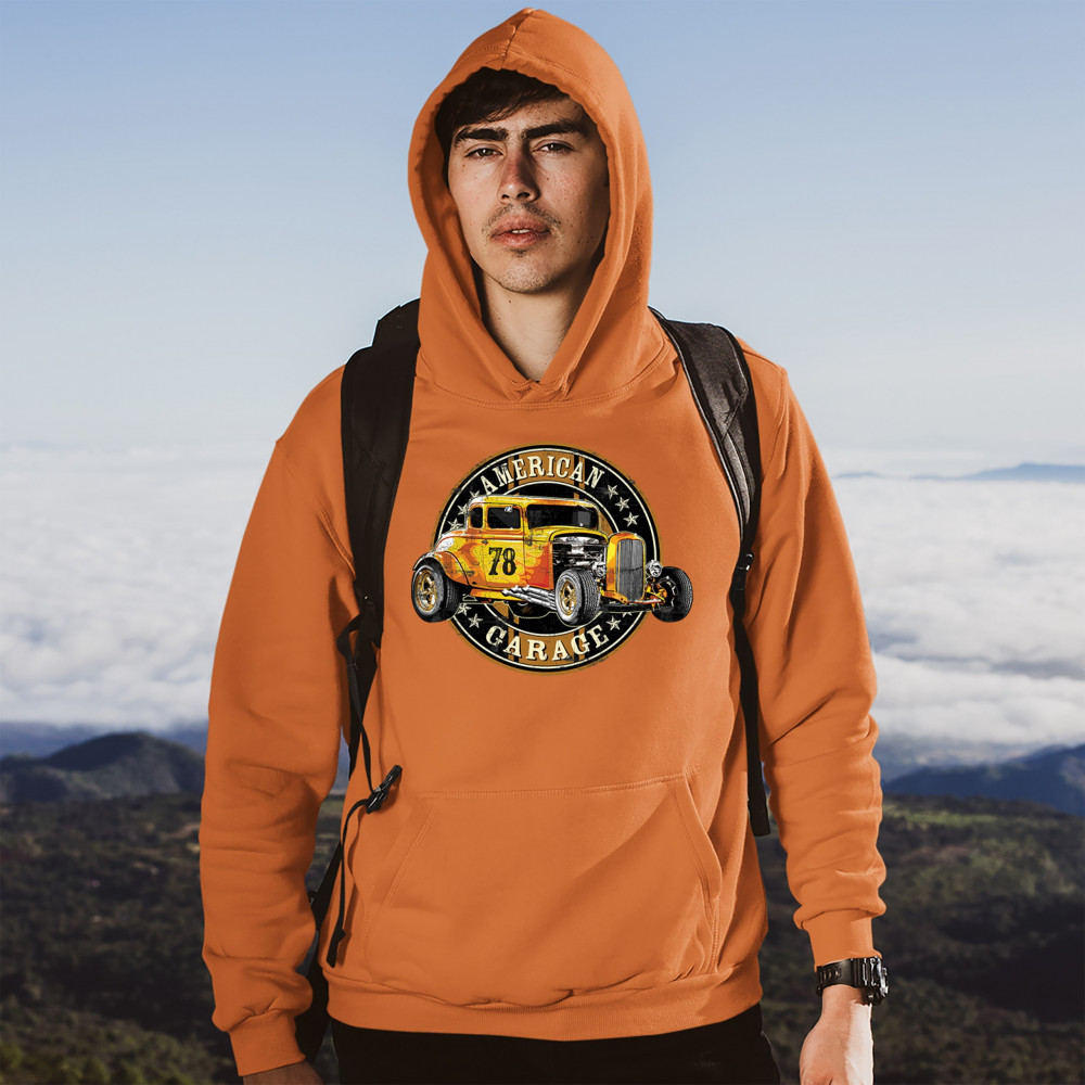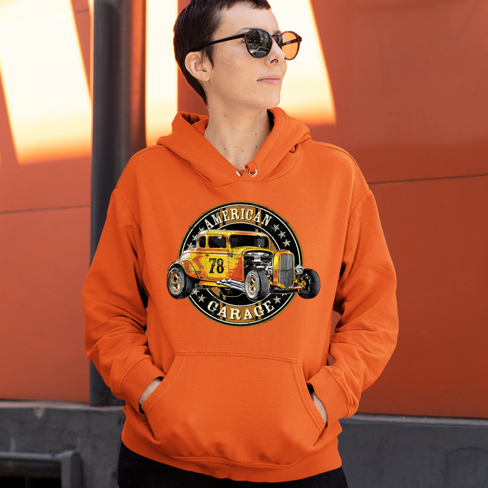AMERICAN GARAGE sweatshirt retro hot rod vintage american muscle hoodie orange