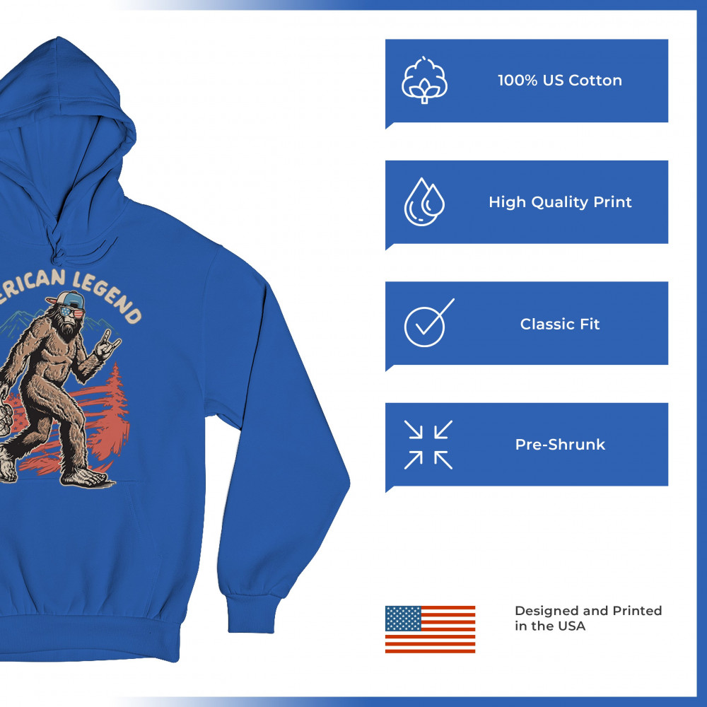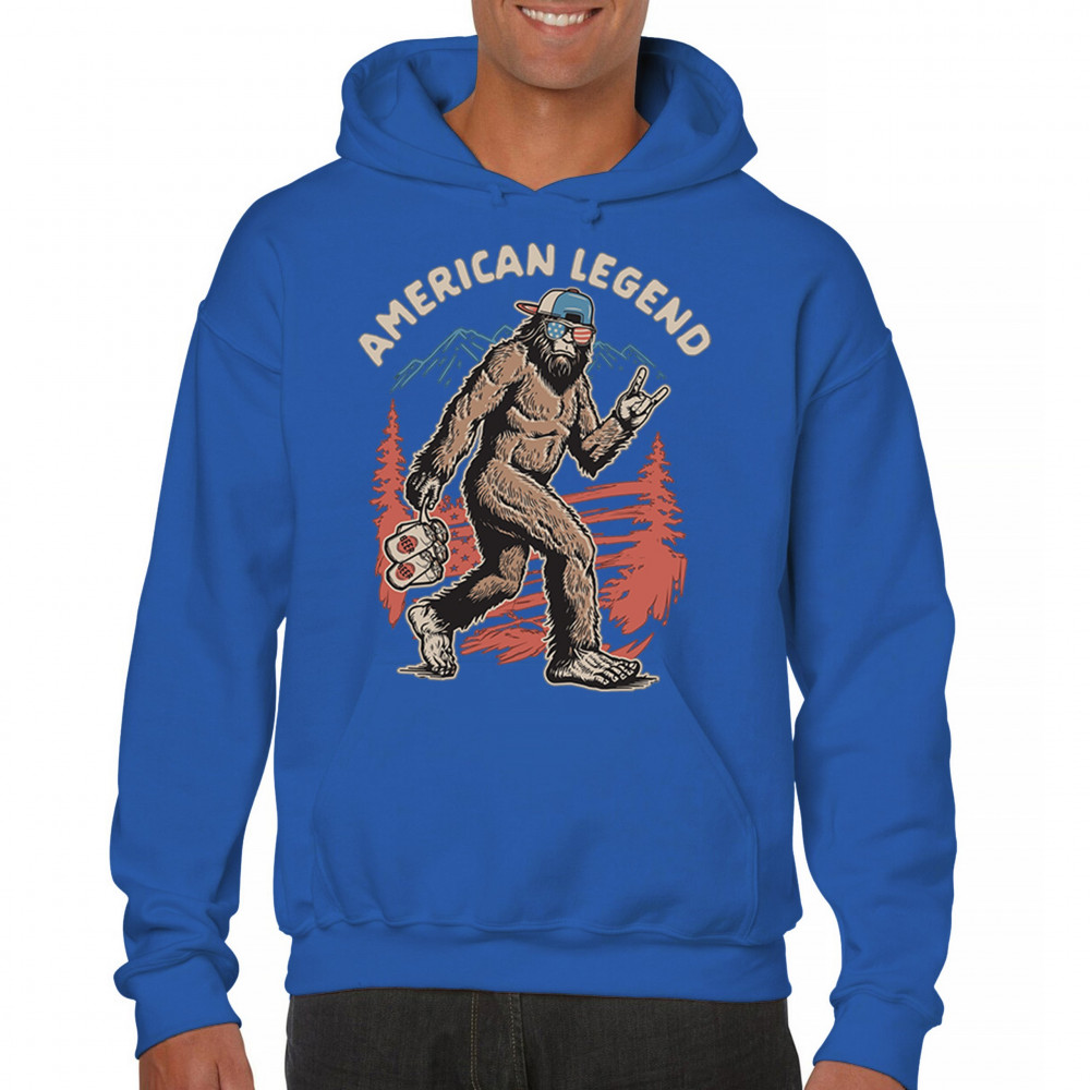 Funny Bigfoot design with patriotic flair—ideal for BBQs, beer lovers, campers, and cryptid fans who love to party in style!