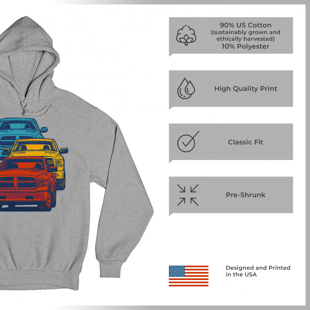 Bold stacked pickup truck design in red yellow blue. Great for lifted truck fans, gearheads, off-road events, and diesel-powered pride.