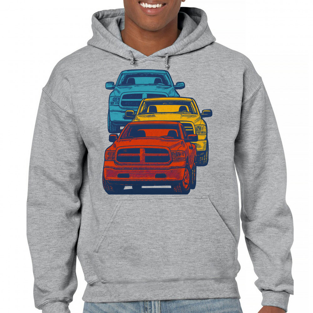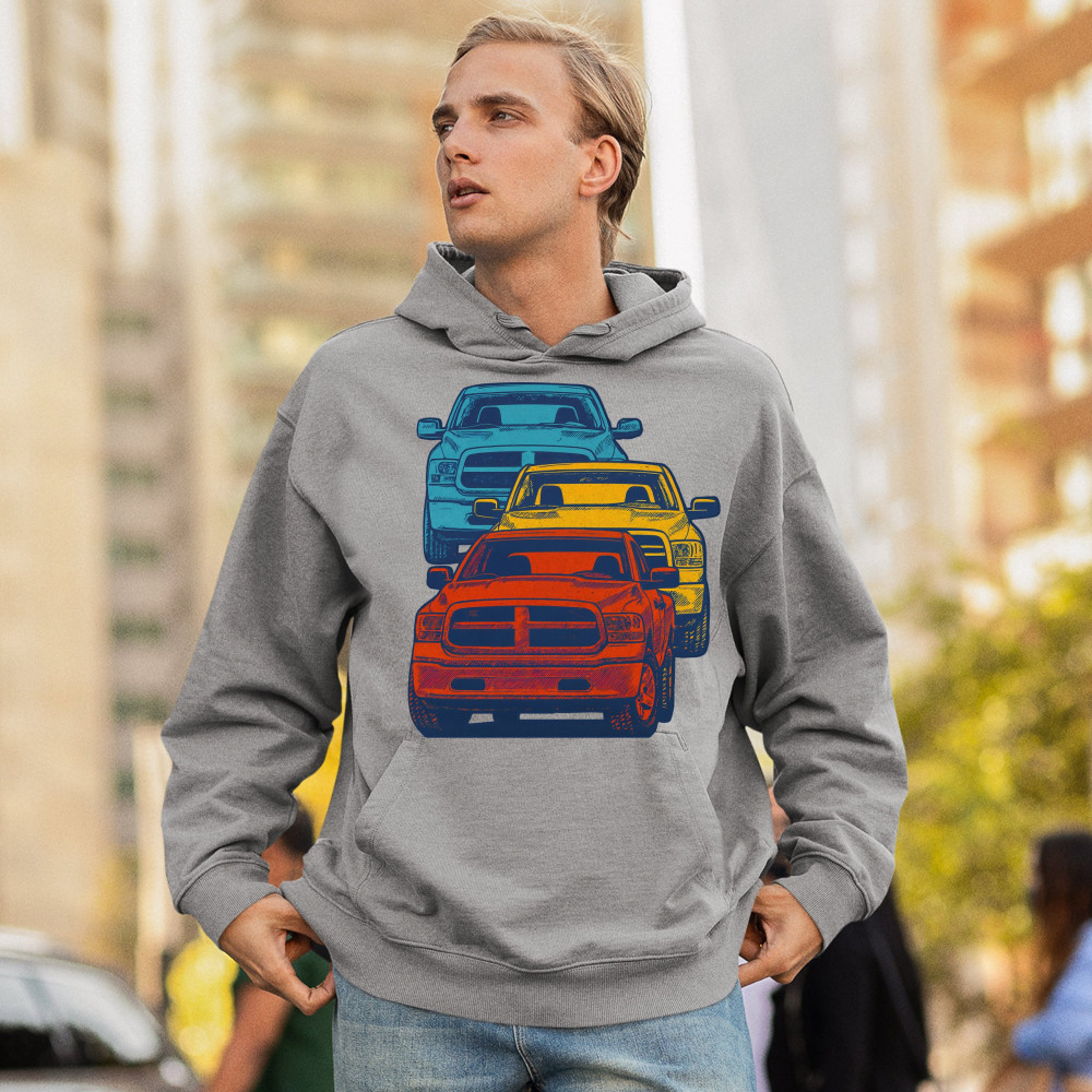 Boldly stacked and powerfully styled, this multicolor truck design showcases red, yellow, and blue pickups in a vertical formation. Made for fans of lifted truck culture, horsepower, and off-road pride, it celebrates diesel grit, road attitude, and the spirit of truck meets and gearhead unity.