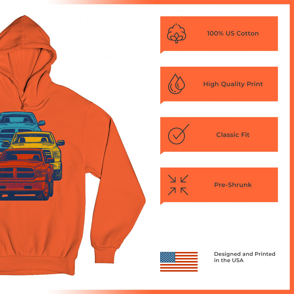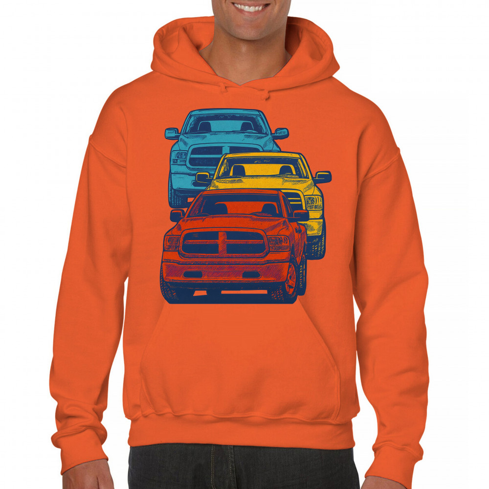 Bold stacked pickup truck design in red yellow blue. Great for lifted truck fans, gearheads, off-road events, and diesel-powered pride.