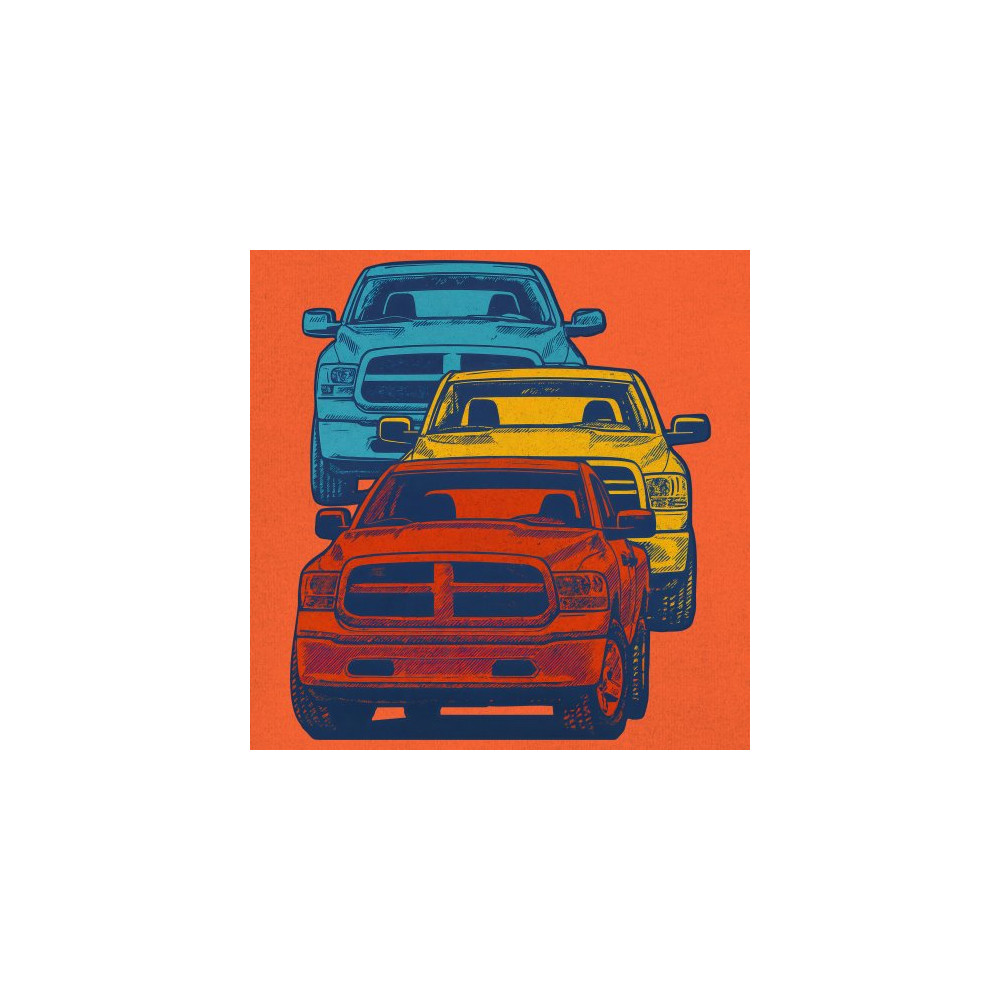 Boldly stacked and powerfully styled, this multicolor truck design showcases red, yellow, and blue pickups in a vertical formation. Made for fans of lifted truck culture, horsepower, and off-road pride, it celebrates diesel grit, road attitude, and the spirit of truck meets and gearhead unity.