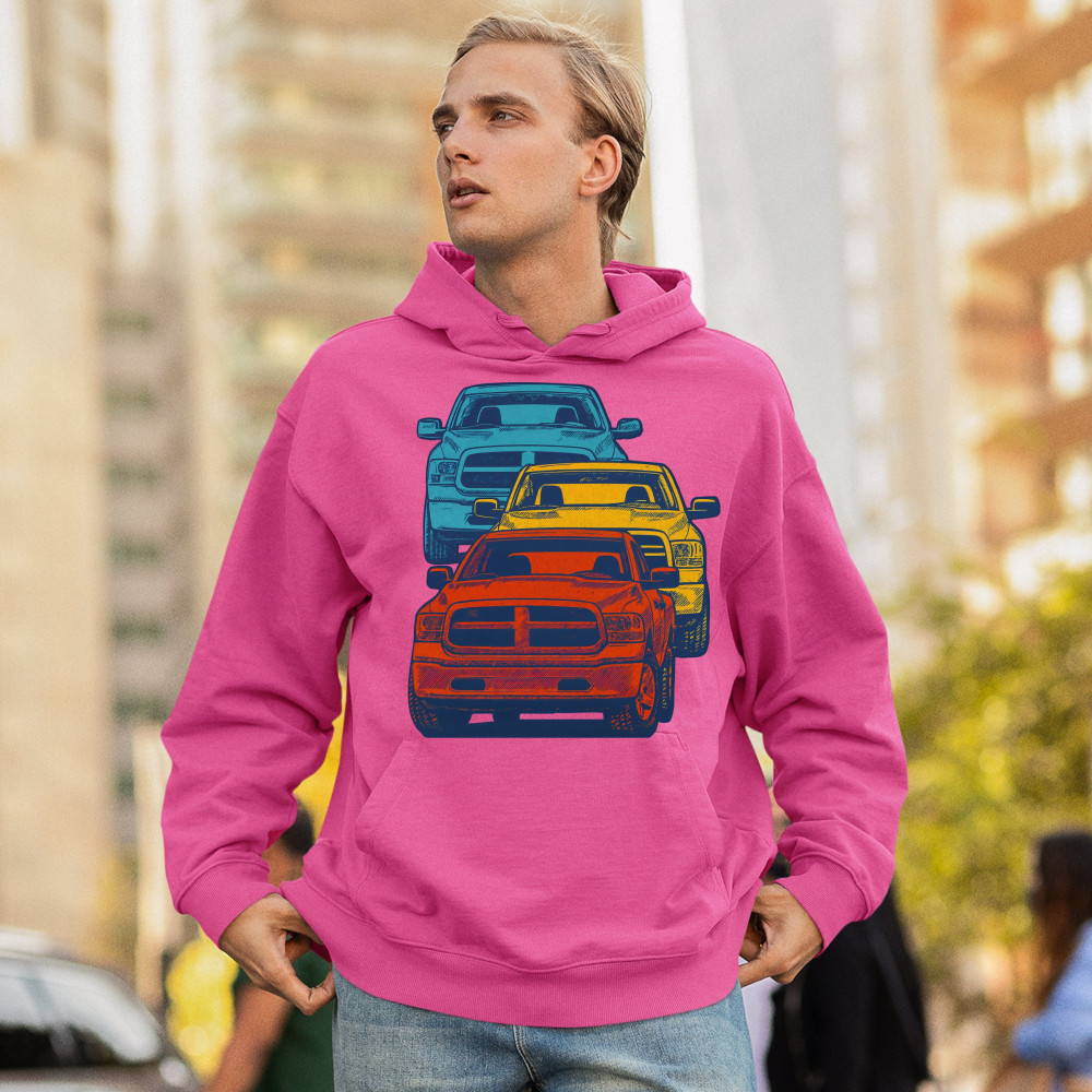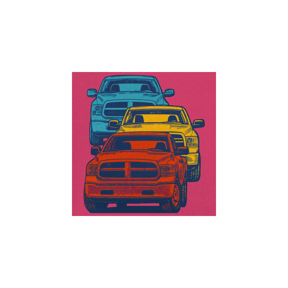 Boldly stacked and powerfully styled, this multicolor truck design showcases red, yellow, and blue pickups in a vertical formation. Made for fans of lifted truck culture, horsepower, and off-road pride, it celebrates diesel grit, road attitude, and the spirit of truck meets and gearhead unity.