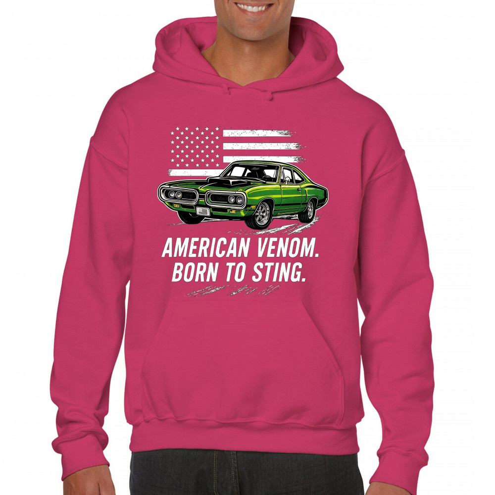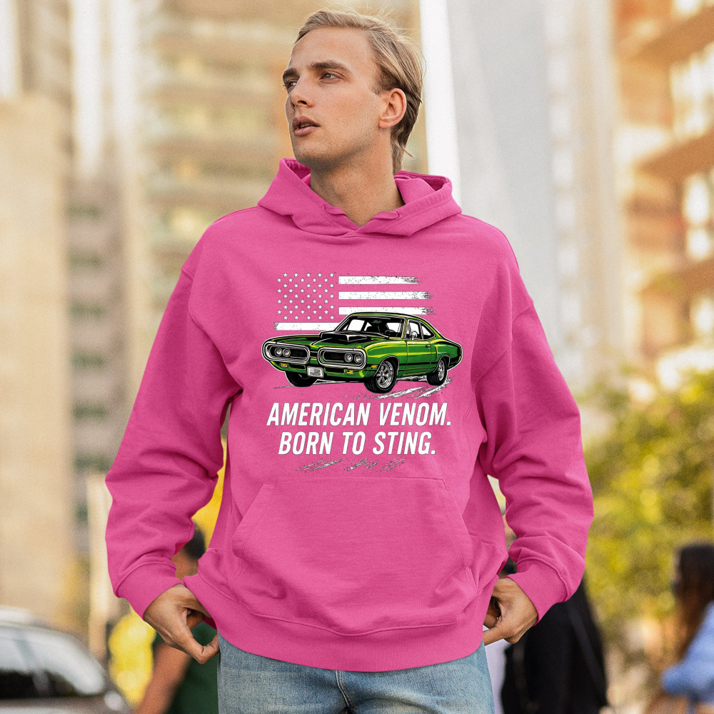 Inject venom into your street style with this bold green muscle car design. With “Born to Sting†power and a backdrop of American pride, this graphic is perfect for Scat fans, gearheads, and drivers who embrace speed, dominance, and the sound of true muscle. Rule car meets, rev battles, and highway runs with unmatched attitude.