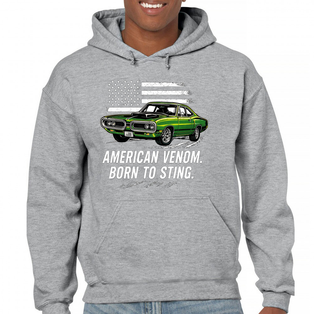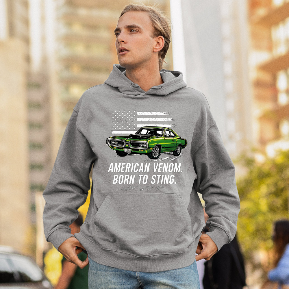 Inject venom into your street style with this bold green muscle car design. With “Born to Sting†power and a backdrop of American pride, this graphic is perfect for Scat fans, gearheads, and drivers who embrace speed, dominance, and the sound of true muscle. Rule car meets, rev battles, and highway runs with unmatched attitude.