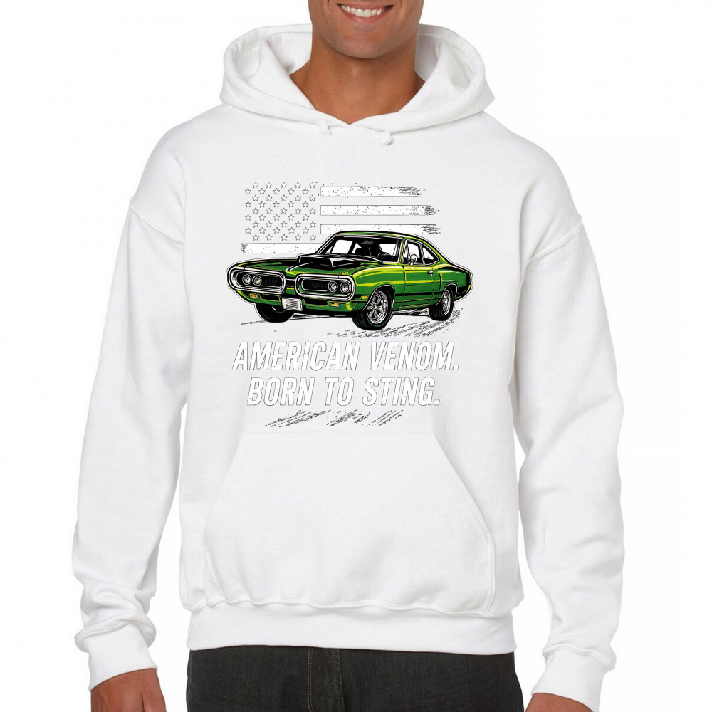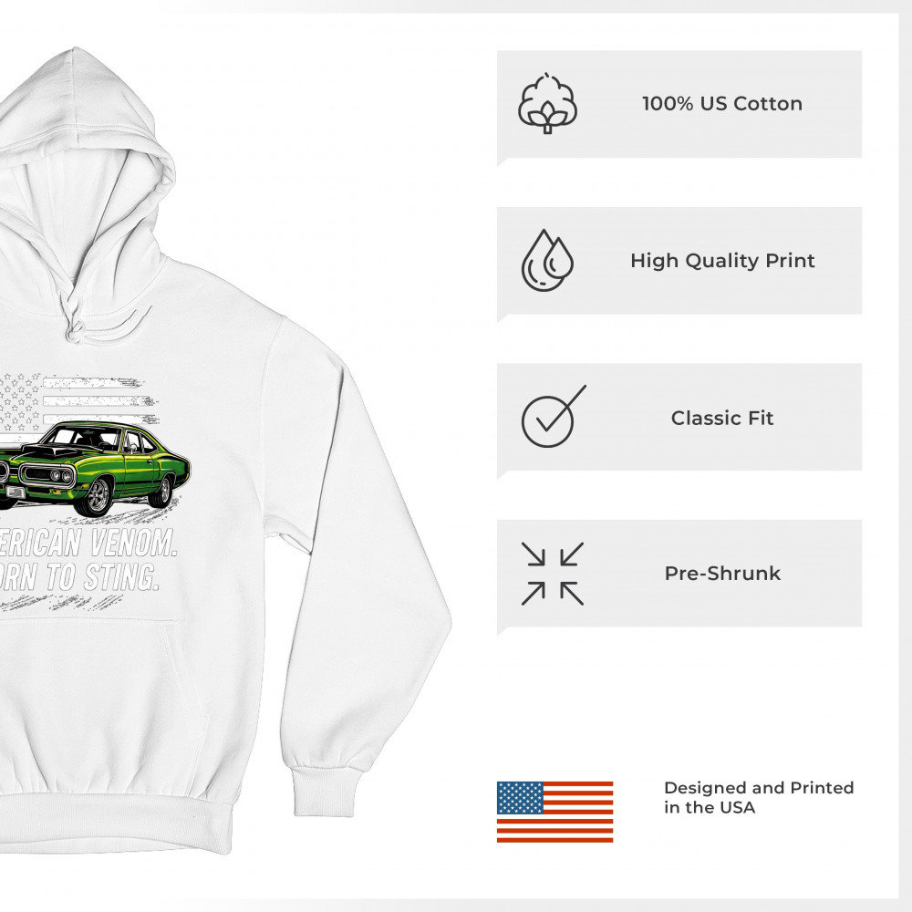 Inject venom into your street style with this bold green muscle car design. With “Born to Sting†power and a backdrop of American pride, this graphic is perfect for Scat fans, gearheads, and drivers who embrace speed, dominance, and the sound of true muscle. Rule car meets, rev battles, and highway runs with unmatched attitude.